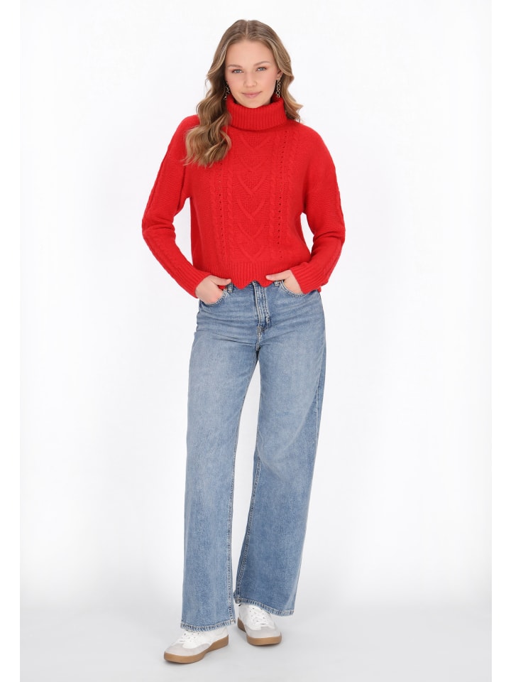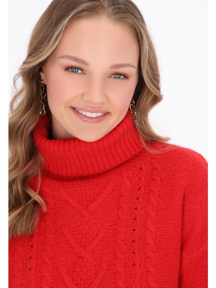 Отдохните стильно в этой модной водолазке из нашей коллекции Young Fashion. Свободный крой и спущенные плечи создают комфортный и непринужденный образ, идеально подходящий для повседневной носки. Этот трикотажный свитер с длинными рукавами и декоративным подолом украшен эффектным узором «косички», который добавит элегантности вашему гардеробу.