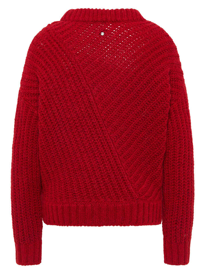 - Ребристая вязка: Вырез горловины, манжеты, подол