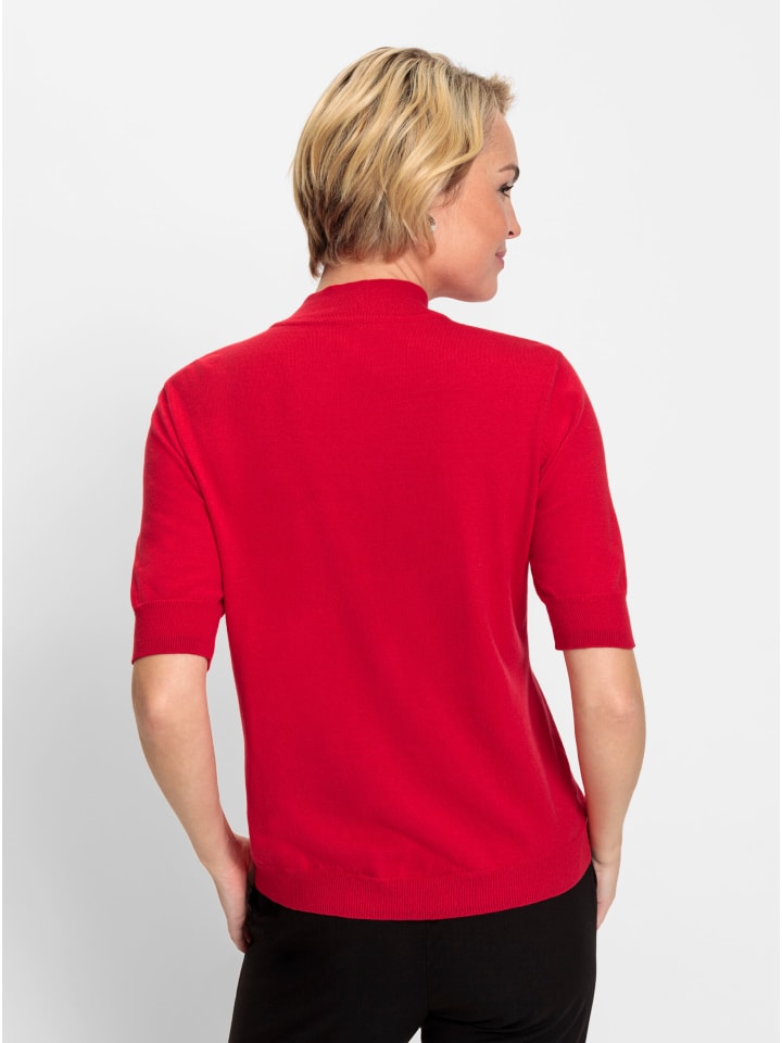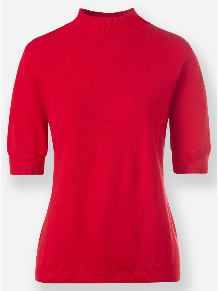 Теплый, мягкий материал из мягкой смеси модала: свитер с воротником-стойкой и слегка удлиненными короткими рукавами. Идеально подходит в качестве базового слоя под кардиганы, жилеты и блейзеры! Вязаный, идеально садится по фигуре. Манжеты и низ в рубчик.