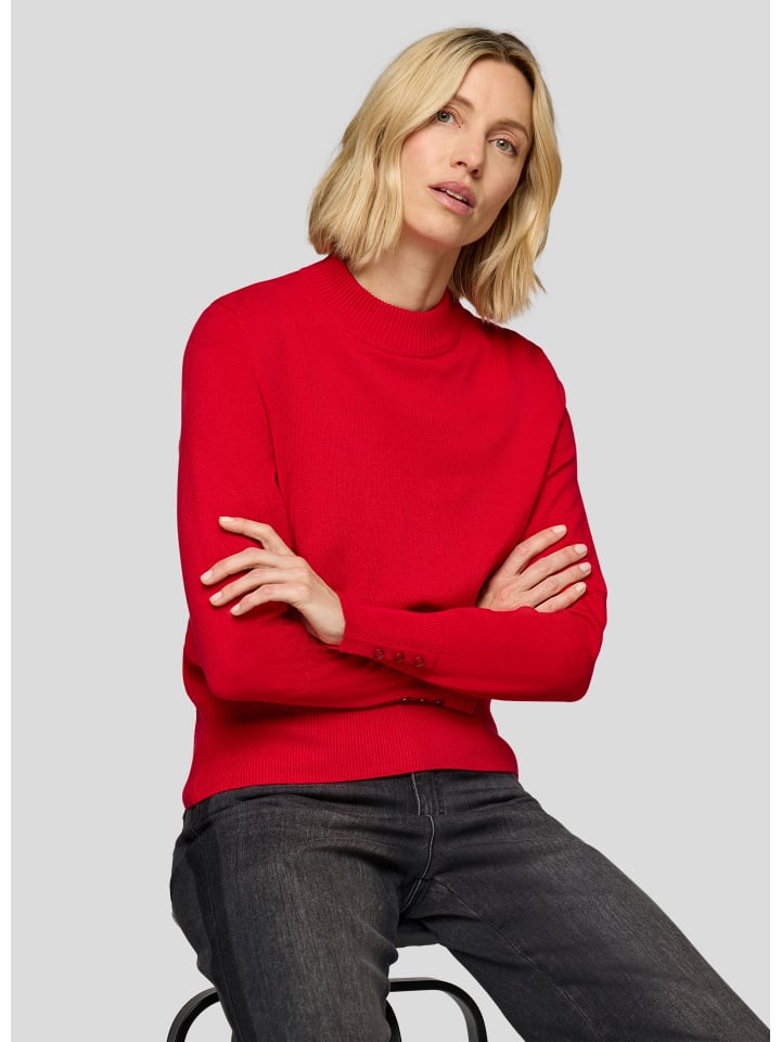 Этот свитер впечатляет своей тонкой вязкой и классическим воротником-стойкой. Длинные рукава заканчиваются широкими ребристыми манжетами, стильно украшенными тремя маленькими пуговицами. Боковые разрезы по низу обеспечивают удобную посадку. Мягкая смесь материала с модалом исключительно приятна для ношения. Тонкая вязка с воротником-стойкой. Широкие ребристые манжеты с пуговицами. Боковые разрезы по низу. Мягкий, сохраняющий форму материал. Длинные рукава с элегантным внешним видом.