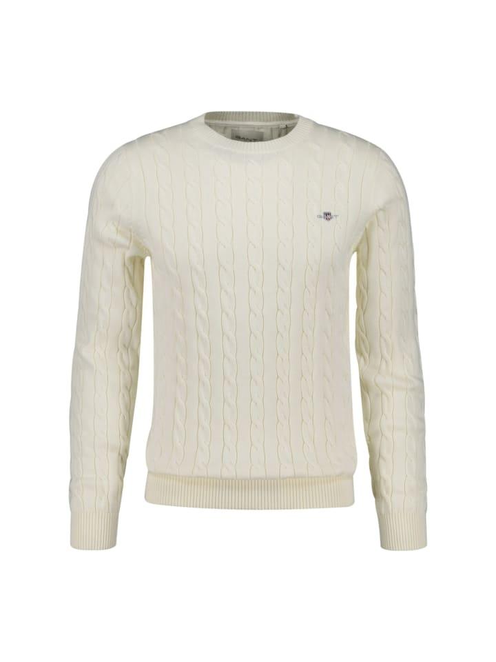 Свитер с круглым вырезом и узором «косички» от GANT. Изготовлен из чистого хлопка, манжеты и низ в рубчик, небольшой вышитый логотип, классический крой.