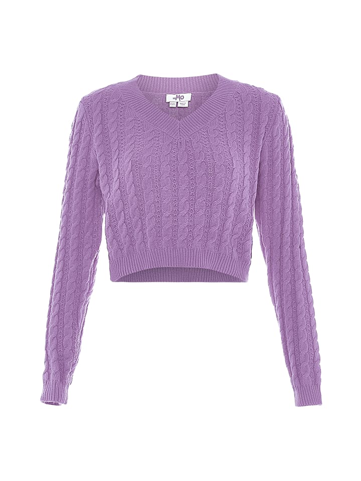 Такие укороченные свитера, как этот, от myMo, - всегда хороший выбор. Мягкая вискозная пряжа связана косичкой и дополнена V-образным вырезом.
