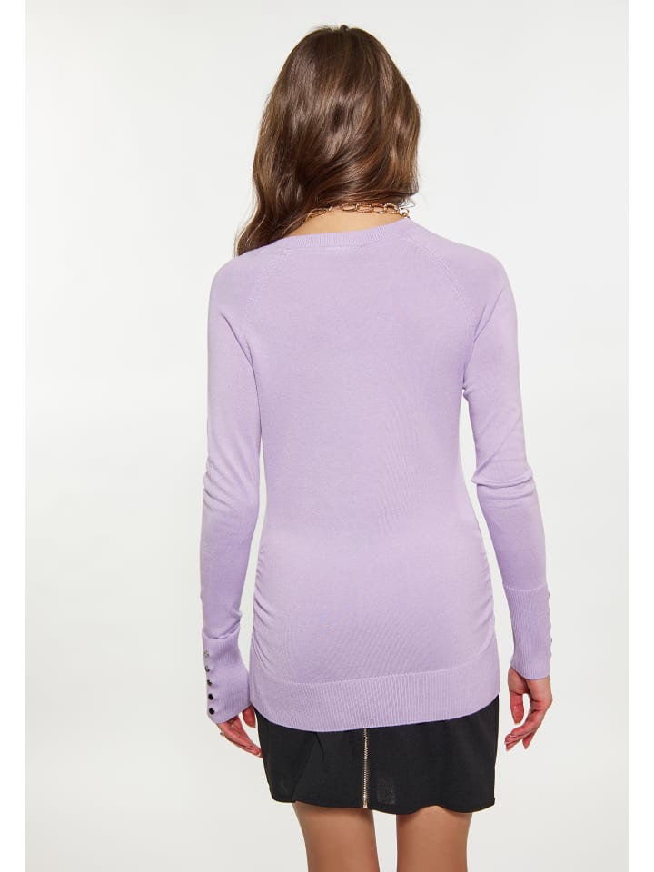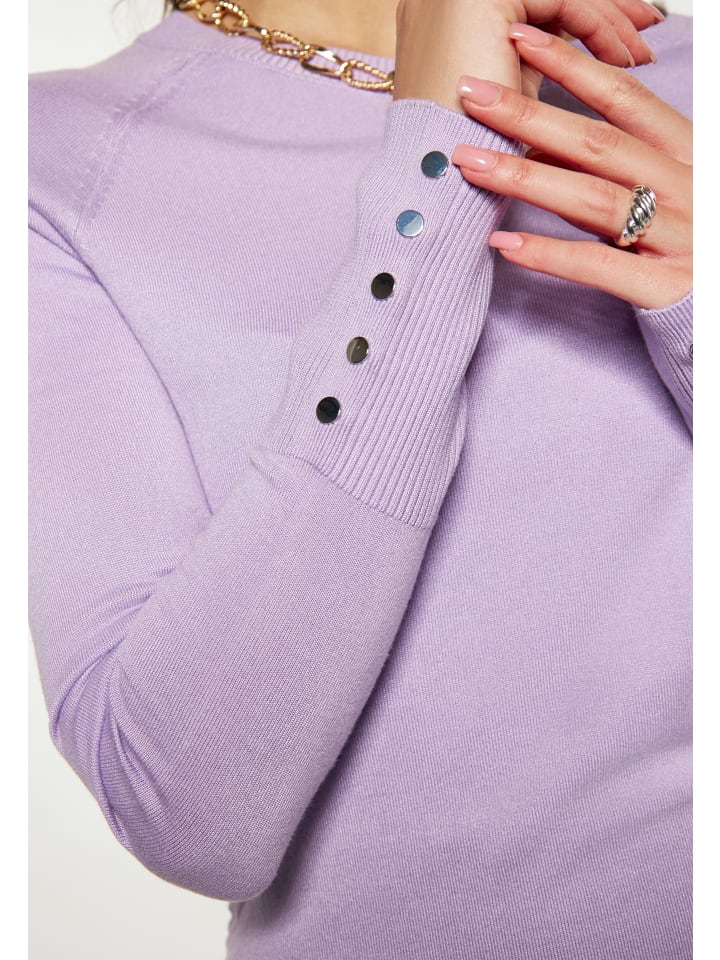 Создайте шикарный и изысканный образ с этим свитером с длинными рукавами и круглым вырезом. Ребристая текстура на манжетах, подоле и вырезе добавляет элегантности приталенному силуэту этого свитера. Украшенный небольшими декоративными пуговицами вдоль манжет, этот свитер идеально подходит для тех, кто ищет стильное и удобное дополнение к своему гардеробу.