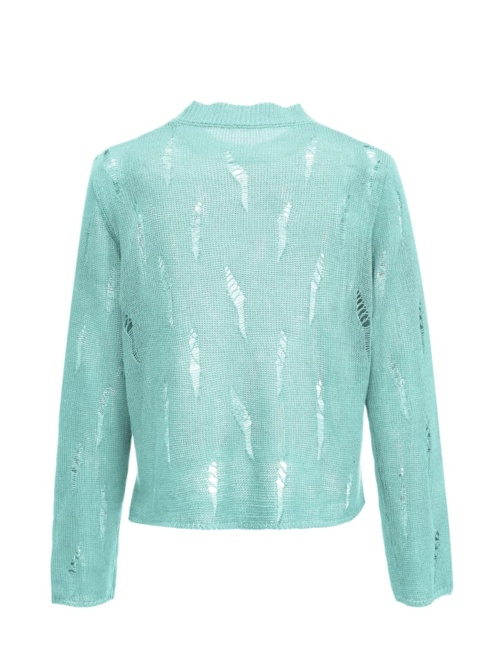 Этот свитер с круглым вырезом и длинными рукавами станет уникальным дополнением к вашему гардеробу. Он выполнен из текстурированной вязки и имеет потертые или намеренно бахромчатые участки, создавая эффект поношенности. Ребристые края, манжеты и вырез обеспечивают удобную посадку, а свободный силуэт делает его идеальным вариантом для использования в качестве внешнего слоя. Легкий блеск ткани добавляет нотку изысканности этому деконструированному образу. Этот свитер, разработанный совместно со SWIRLY, сочетает в себе классический стиль и современный дизайн.