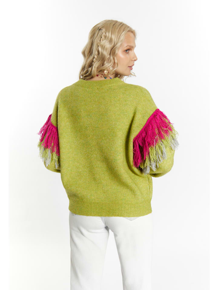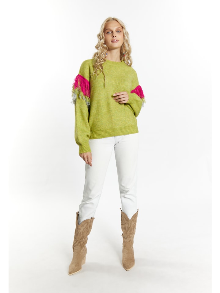 Мягкий свитер IZIA впечатляет своей формой и расцветкой. Свитер, выполненный из мягкой смесовой пряжи, украшен декоративными и красочными акцентами на рукавах, подчеркивающими непринужденный стиль бохо бренда. Ребристые манжеты завершают дизайн.