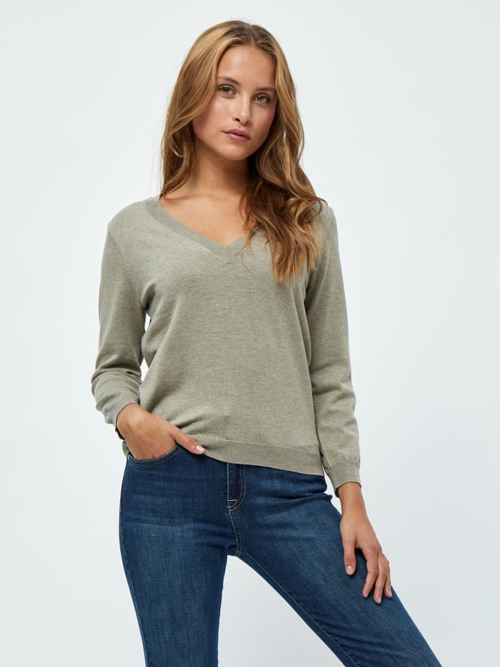 Вязаный свитер Milla изготовлен из смеси экологичной альтернативы вискозе Eco Vero и эластана, что придает ему эластичность и мягкость. Рукава три четверти и V-образный вырез делают его удобным для ношения.