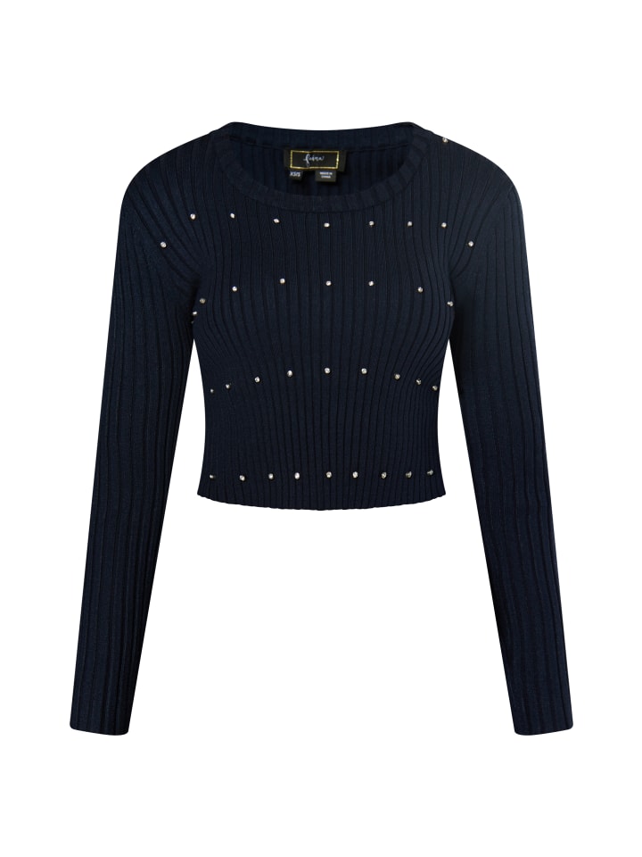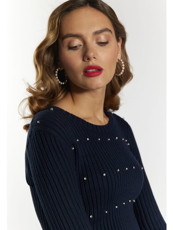 Женский свитер со стразами в темно-синем цвете faina 11 942₽