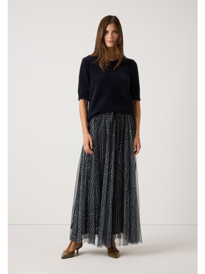 Этот пушистый свитер с короткими рукавами от MORE & MORE выглядит суперсовременно с юбкой из сетки макси, но его также можно носить повседневно с джинсами или клетчатыми брюками.