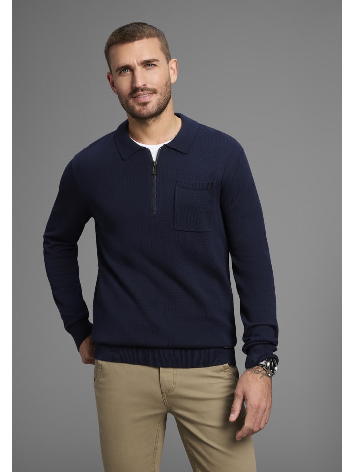 Классический мужской трикотажный свитер от Bruno Banani. Приталенный крой. Круглый вырез горловины застегивается на пуговицы. Длинные рукава. Тонкий трикотажный верх приятен на ощупь и удобен в носке.