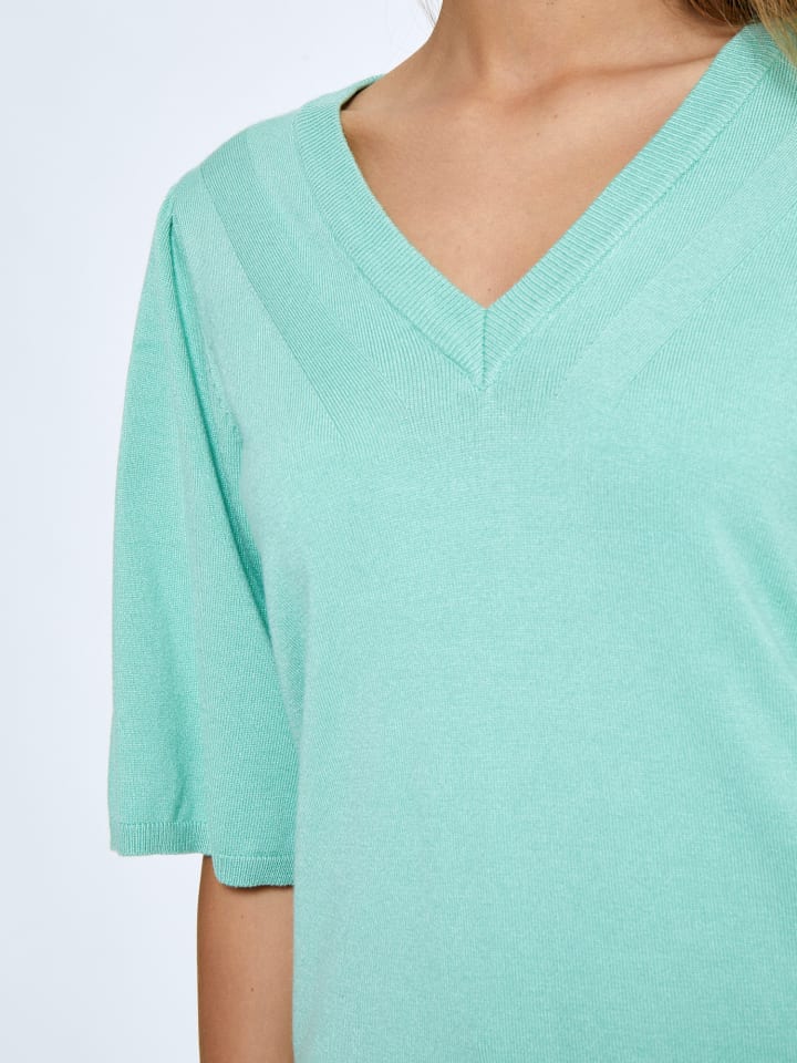 Представляем трикотажный топ PCGlenda с короткими рукавами от Peppercorn - гармоничное сочетание элегантности и комфорта. Изготовленный из высококачественной вискозы и нейлона LENZING ECOVERO, этот топ отличается легкостью и оптимальной структурой. Продуманный V-образный вырез добавляет нотку изысканности и идеально сочетается с короткими рукавами с легкими буфами, создавая непринужденный шикарный силуэт. Благодаря легкой драпировке он станет универсальным предметом гардероба, как для деловой встречи, так и для непринужденного завтрака. Сочетайте его с брюками строгого кроя для создания изысканного образа или с любимыми джинсами для создания непринужденного образа.