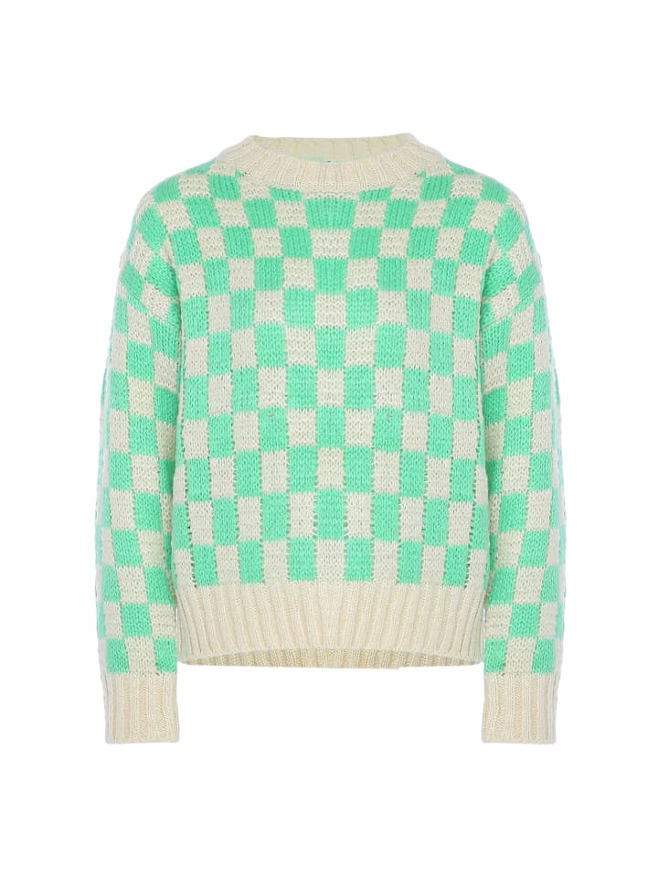 Женский клетчатый свитер Sookie с круглым вырезом, мятный цвет. Эта модель, разработанная совместно с Sookie, сочетает в себе классический стиль и современный дизайн.