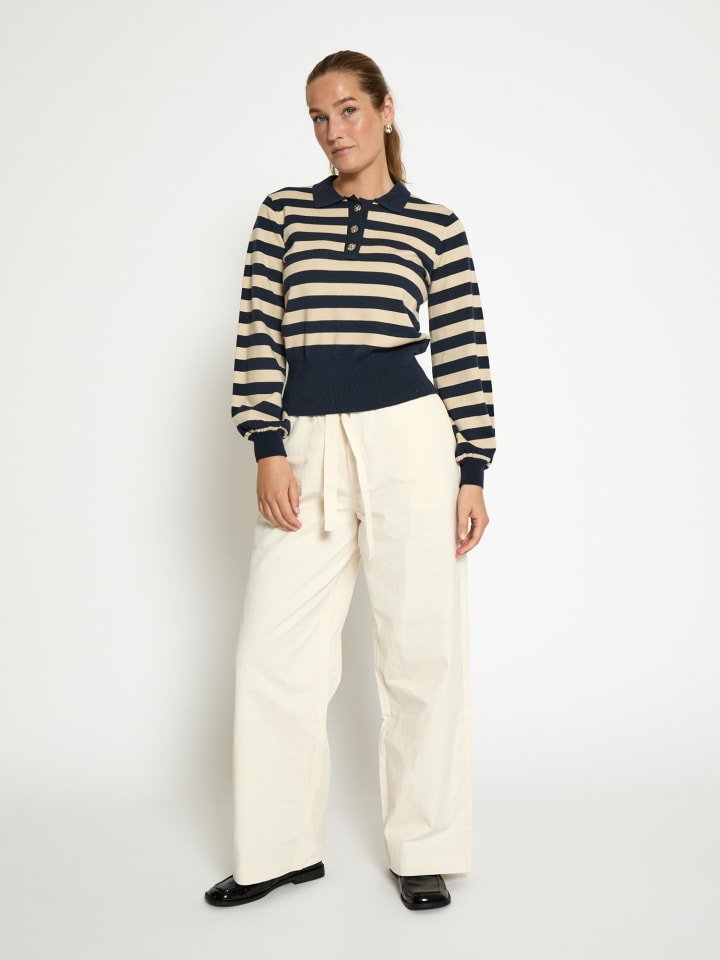 Украсьте свой гардероб вязаным свитером MSAliana - вневременной вещью, излучающей непринужденную элегантность. Классический воротник и эффектная застежка на пуговицы на горловине создают изысканный образ, идеально дополняемый струящимися длинными рукавами, плавно сужающимися к манжетам. Свитер, изготовленный из роскошной вискозной смеси LENZING ECOVERO, обеспечивает комфорт и экологичность. Изысканная структура трикотажа подчеркивает элегантный силуэт и обеспечивает свободную посадку, идеально подходящую для многослойной одежды. Сочетайте его с брюками строгого кроя или элегантной юбкой, и этот свитер легко перейдет как из дневного, так и из вечернего гардероба.