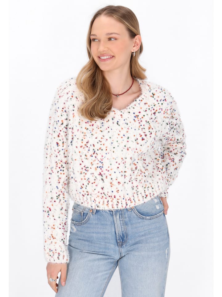 Этот стильный свитер с V-образным вырезом - идеальное сочетание комфорта и модного внешнего вида. Изготовленный из мягкой трикотажной пряжи разноцветного меланжа, он очаровывает своим оригинальным плетением и выразительным характером. Классический прямой крой и длинные рукава обеспечивают комфортную повседневную носку. Идеально подходит для повседневного городского стиля. Этот свитер входит в коллекцию Young Fashion.