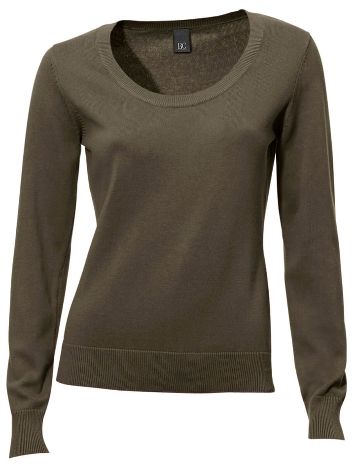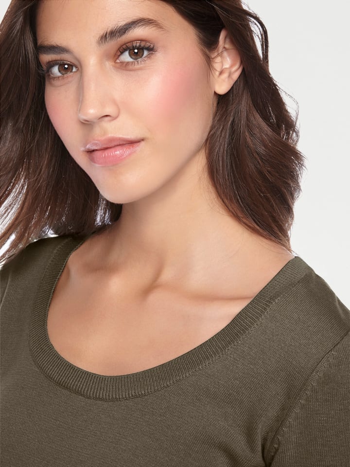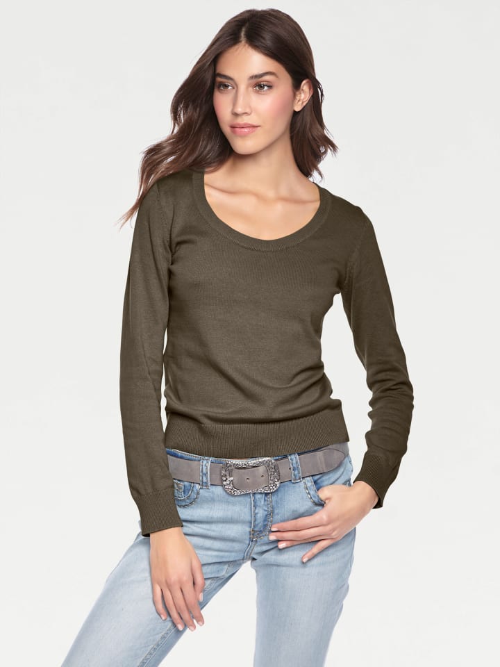 Свитер с круглым вырезом оливкового цвета Heine