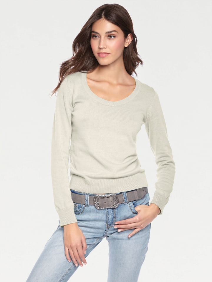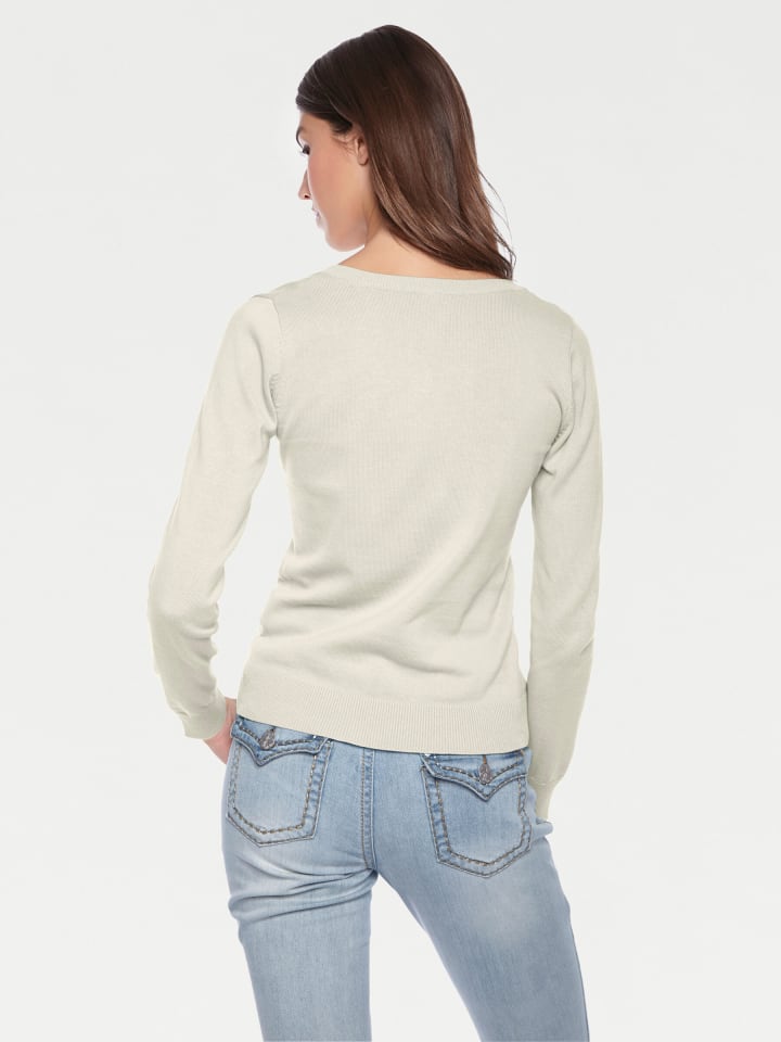 Свитер с круглым вырезом в оттенке белого Heine