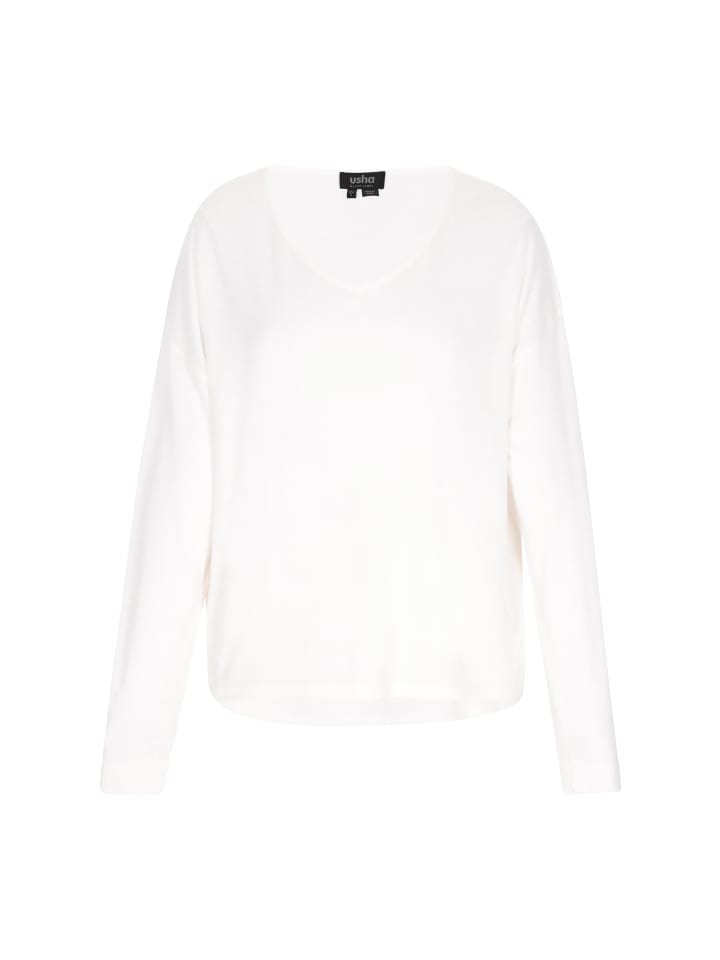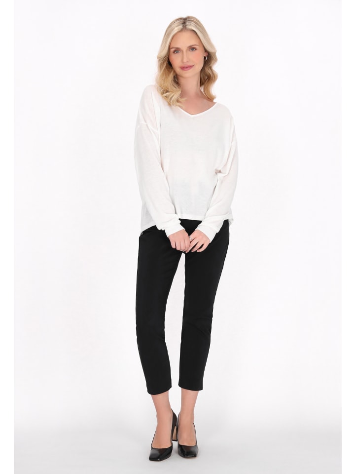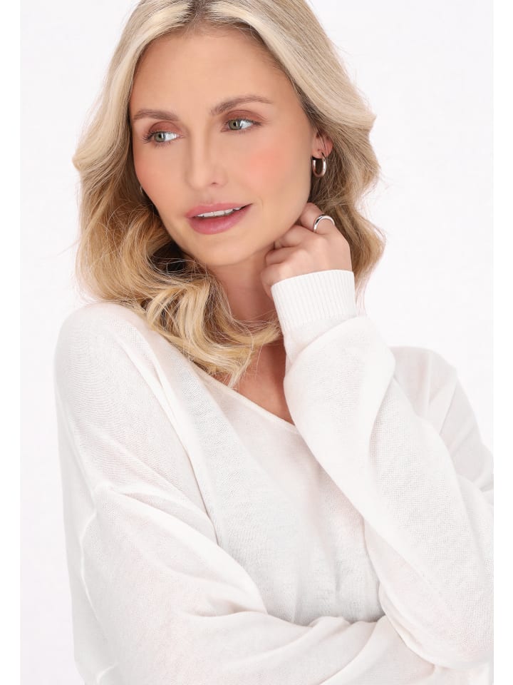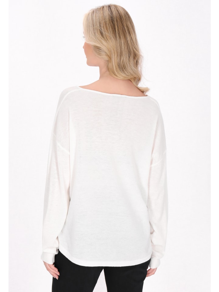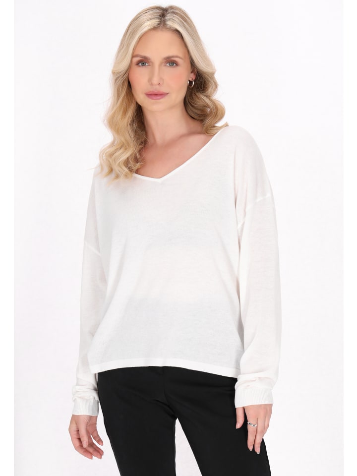 - Свободный свитер с V-образным вырезом и длинными рукавами