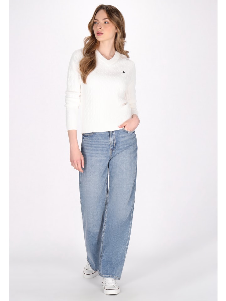 Украсьте свой повседневный гардероб этим свитером с V-образным вырезом из нашей коллекции «Морская жизнь». Он выполнен в классическом крое с длинными рукавами, украшен классическим узором «косички» и изящной вышивкой, что придает ему стильный вид. Этот универсальный свитер сочетает в себе повседневный комфорт и вневременную привлекательность, идеально подходя для повседневной носки с нотками морской элегантности.