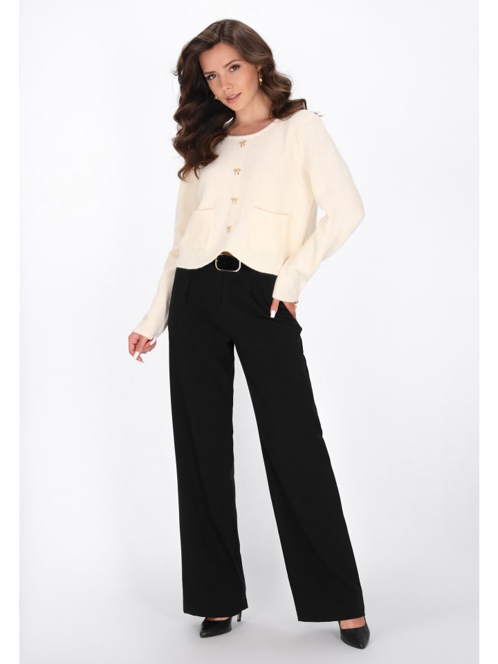 - Кардиган стандартного кроя с круглым вырезом и длинными рукавами