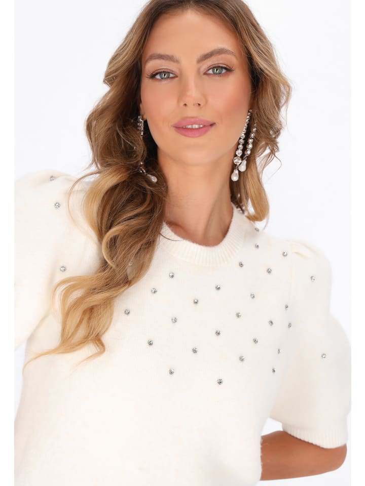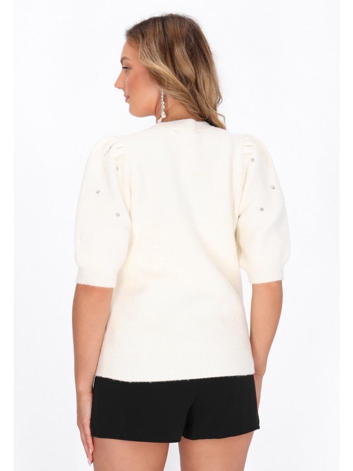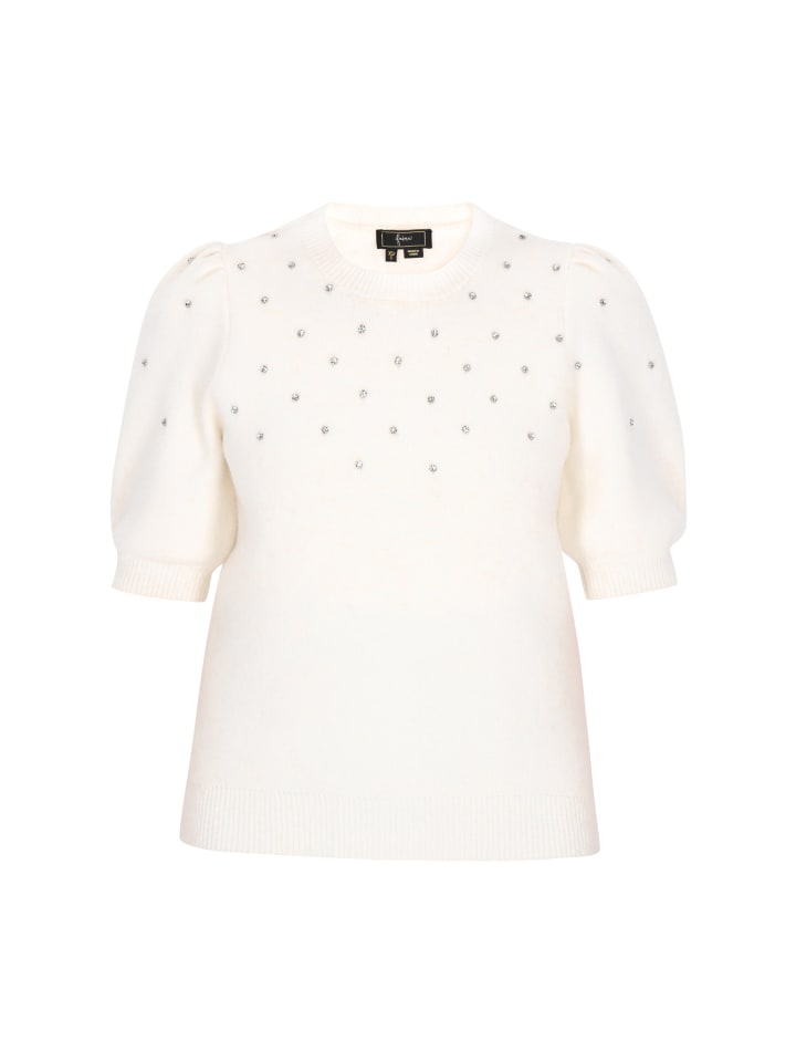 Обновите свой повседневный гардероб этим свитером прямого кроя из коллекции Fashion Look. Он изготовлен из мягкого трикотажа с четким, простым узором и классическим круглым вырезом. Короткие рукава-фонарики добавляют игривый, стильный штрих, а изящные стразы - легкий блеск. Удобный и стильный, этот свитер идеально подходит для непринужденного повседневного образа.