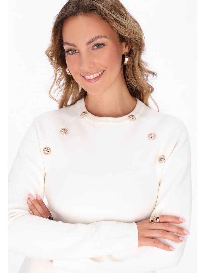 Обновите свои повседневные вещи этим свитером прямого кроя из коллекции Fashion Look. Он изготовлен из мягкой трикотажной ткани с классическим однотонным узором, имеет удобный круглый вырез и длинные рукава реглан для свободы движений. Декоративные пуговицы добавляют изящную деталь, делая этот свитер одновременно уютным и стильным для повседневной носки.