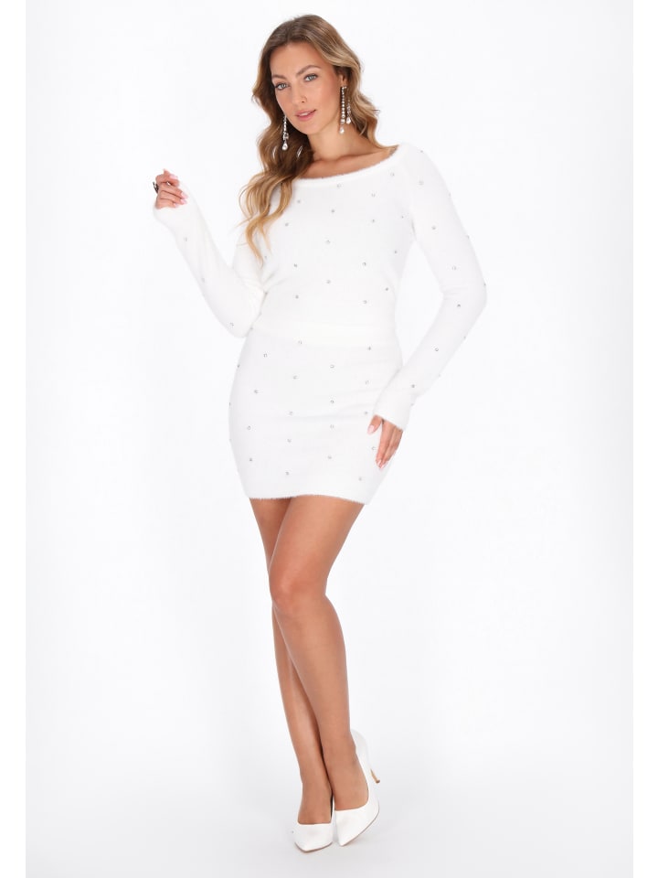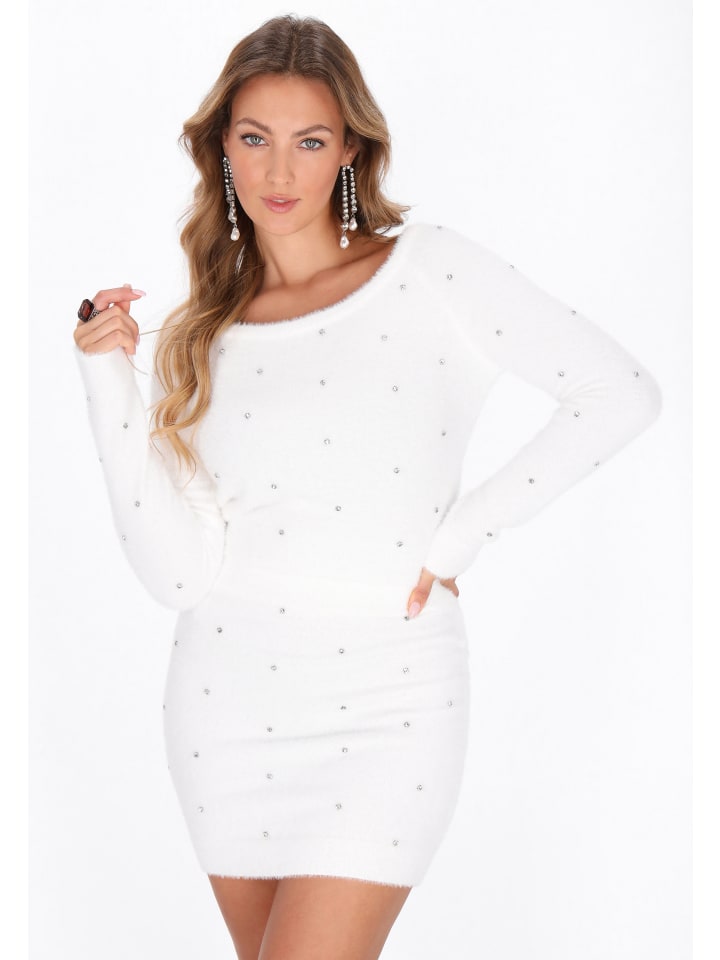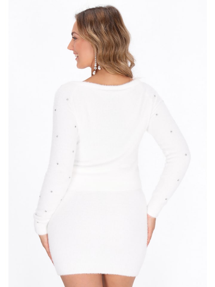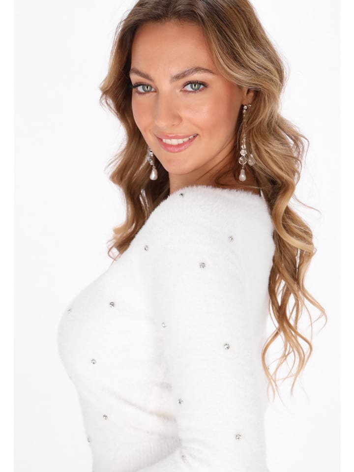 Обновите свою повседневную коллекцию этим свитером прямого кроя из коллекции Fashion Look. Он изготовлен из мягкой трикотажной ткани с классическим однотонным узором, имеет развевающийся круглый вырез горловины и длинные рукава для комфорта в течение всего дня. Изящные стразы добавляют изящный блеск, делая этот свитер одновременно уютным и стильным.