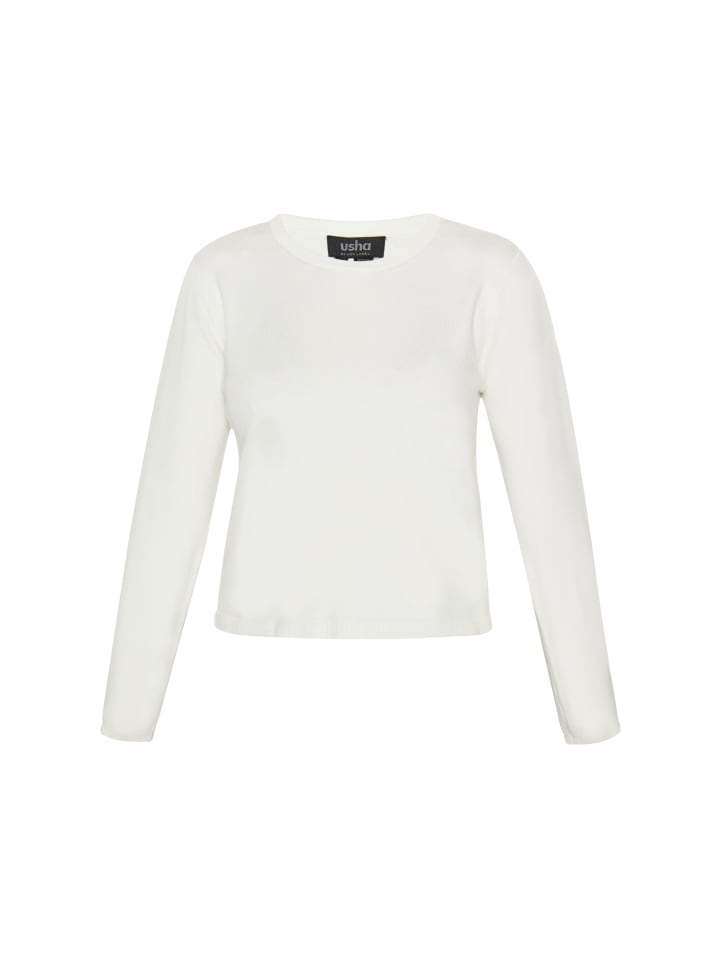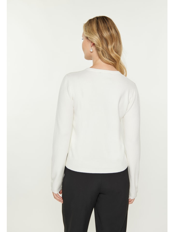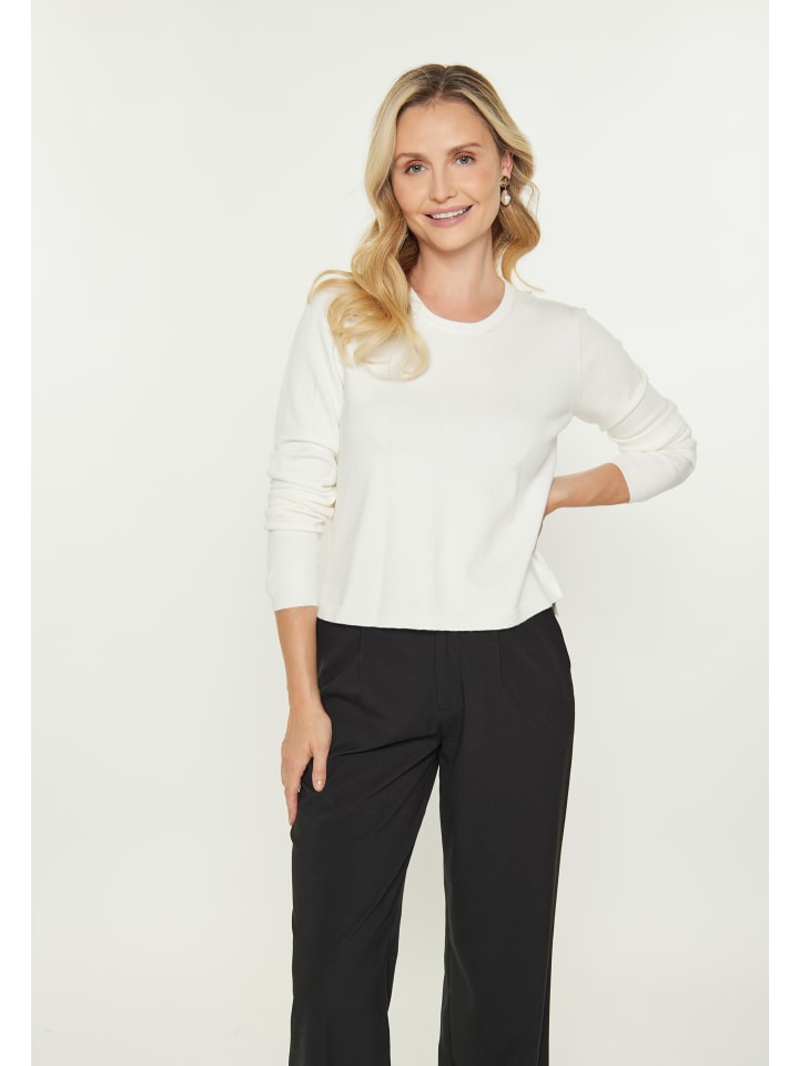 - Свитер прямого кроя с круглым вырезом и длинными рукавами