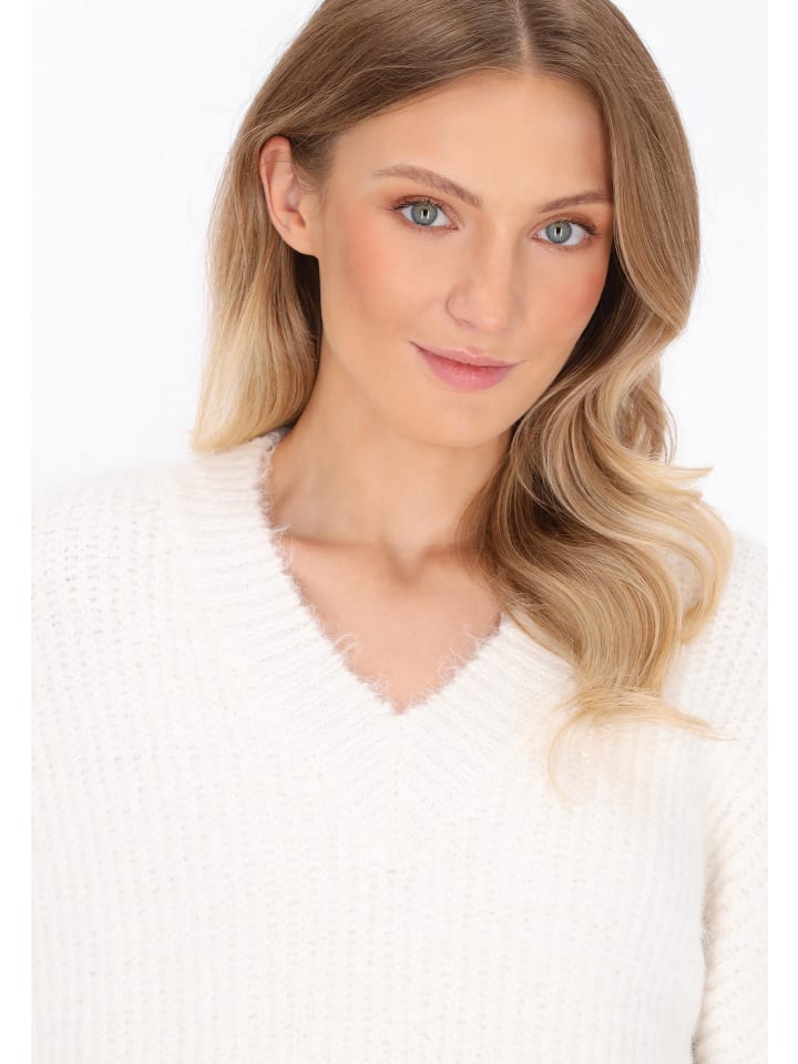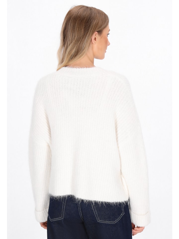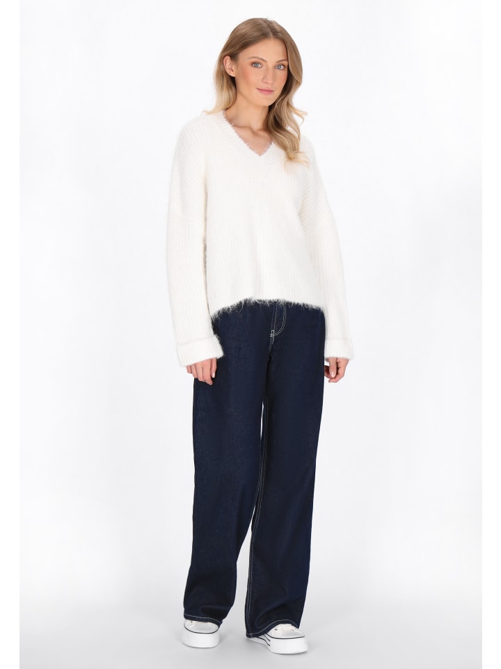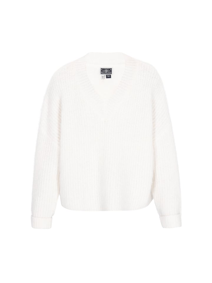 - Свободный свитер с V-образным вырезом и длинными рукавами
