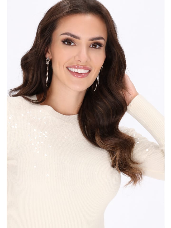 Этот стильный свитер из коллекции Fashion Look - идеальное сочетание классического кроя и модных деталей. Изготовленный из эластичного трикотажа в рубчик с приталенным кроем, он идеально садится по фигуре, подчеркивая ее достоинства. Круглый вырез горловины и длинные рукава обеспечивают комфорт и тепло, идеально подходят для холодных дней. Мягкий узор дополнен яркими пайетками, которые добавляют блеска и элегантности всему образу. Отличный выбор как для повседневной носки, так и для особых случаев.