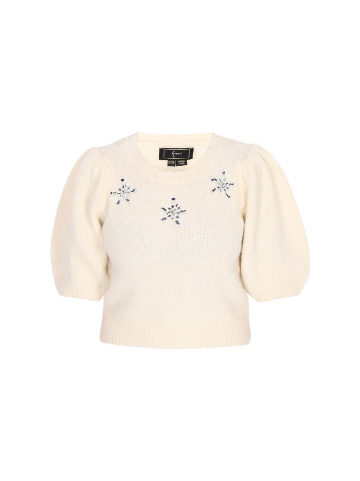 - Свитер прямого кроя с круглым вырезом и рукавами-буфами