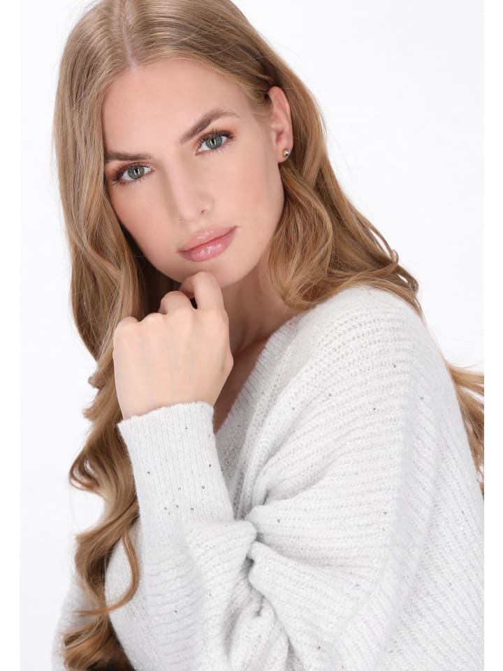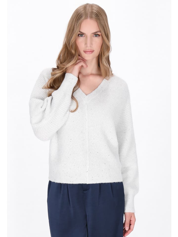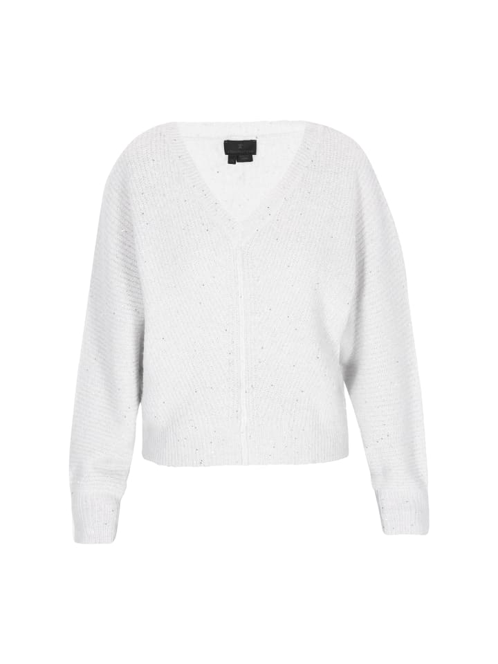 Сияйте сдержанной элегантностью в этом свободном свитере с V-образным вырезом из нашей классической коллекции. Рукава «летучая мышь», сотканные изящной металлической нитью и украшенные нежными пайетками, гармонично сочетают в себе классический стиль и легкий блеск. Этот свитер из мягкого трикотажа с простым узором обеспечивает непринужденный комфорт и изысканный стиль - идеально подходит для добавления нотки стиля в повседневные образы.