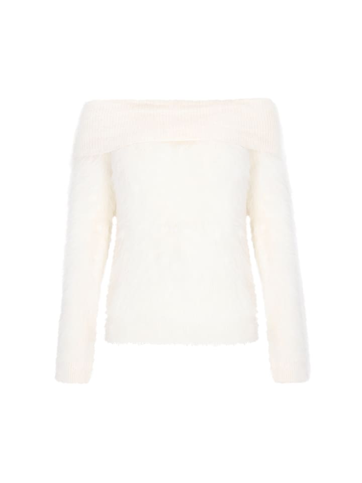 - Джемпер прямого кроя с открытыми плечами и длинными рукавами
