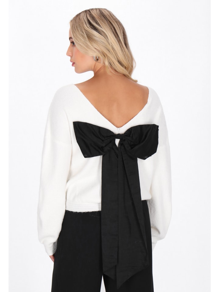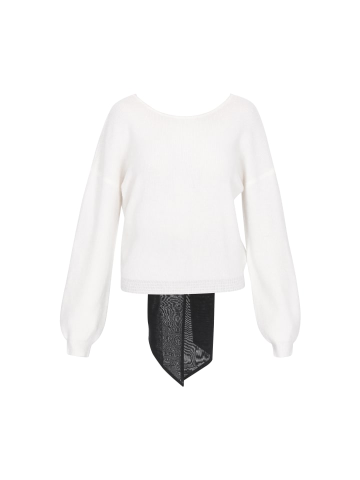 Этот свободный свитер - уникальное сочетание комфорта и женственного очарования. Изготовленный из мягкой трикотажной ткани в рубчик, он очаровывает своим простым передом и эффектной открытой спиной, украшенной бабочкой. Широкий вырез сзади, длинные рукава и спущенные плечи создают непринужденный, модный образ. Мягкий узор делает свитер идеальным дополнением к различным вещам гардероба. Идеально подходит для повседневной носки - удобный и стильный. Прекрасный выбор из коллекции Fashion Look.