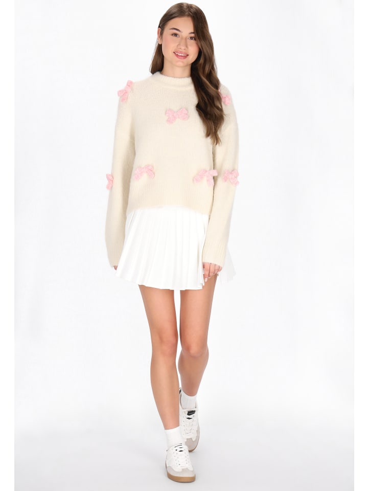 Обновите свой школьный гардероб этим уютным свитером из коллекции MyMo. Свободный крой, круглый вырез горловины и спущенные плечи обеспечивают комфортную повседневную носку со стильным акцентом. Мягкий трикотаж украшен изящной вышивкой в виде банта, что добавляет игривости и женственности. Эта удобная вещь идеально подходит для повседневных школьных дней или спокойных выходных, сочетая в себе молодежную моду и непринужденное очарование.