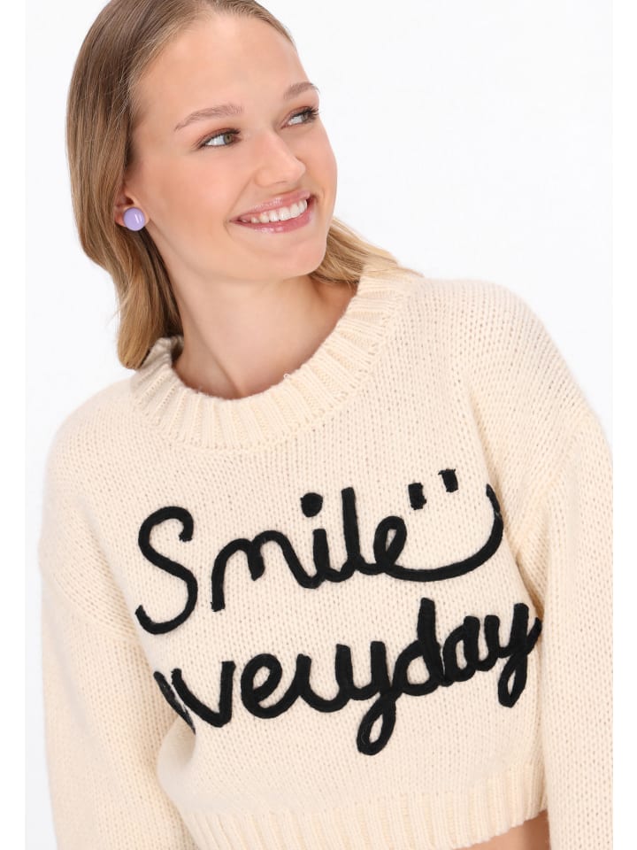 Этот короткий свободный свитер сочетает в себе комфорт и очаровательный молодежный стиль. Изготовленный из мягкой трикотажной ткани и украшенный веселым игривым узором, он по-настоящему притягивает взгляды. Круглый вырез горловины, длинные рукава-фонарики и спущенная линия плеча придают ему непринужденный и повседневный вид. Удобный и мягкий на ощупь, он станет идеальным повседневным выбором для любителей модного и комфортного стиля. Этот свитер входит в коллекцию Young Fashion.