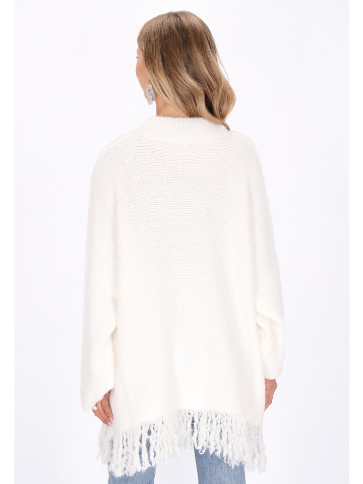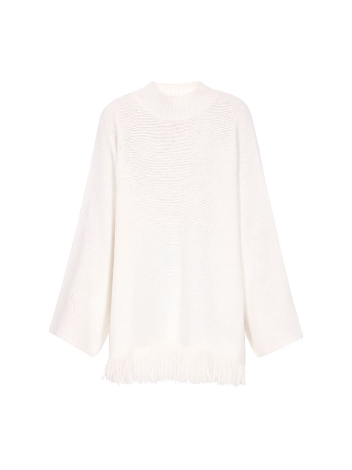 Оставайтесь в комфорте и беззаботности в этом свободном свитере из коллекции Boho. Классический круглый вырез горловины и длинные широкие рукава обеспечивают непринужденный комфорт и непринужденный силуэт. Этот свитер, связанный мягким однотонным узором и дополненный игривой бахромой, сочетает в себе богемный шарм и повседневную носку. Идеально подходит для многослойного ношения или самостоятельно, он станет универсальным и уютным дополнением к любому гардеробу.