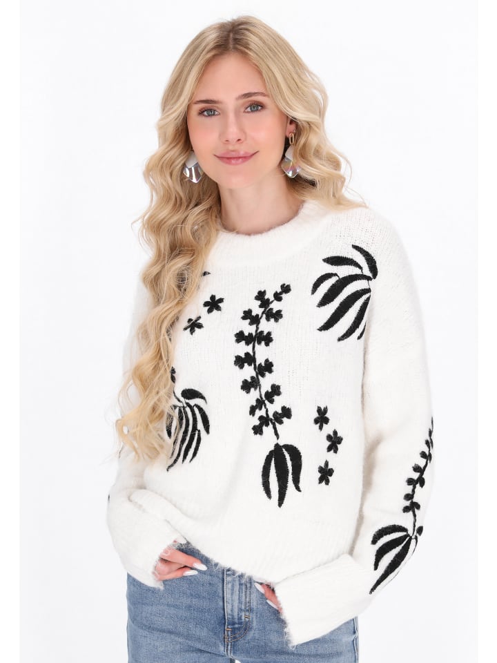 Придайте своему повседневному образу нотку богемы и бохо с этим уникальным свитером из коллекции Fashion Look. Изготовленный из мягкой трикотажной ткани, он отличается свободным кроем и спущенными плечами для комфорта и свободы движений. Круглый вырез горловины и длинные рукава делают его идеальным выбором для прохладной погоды. Изящная цветочная вышивка добавляет очарования, прекрасно дополняя структуру вязки и придавая изделию неповторимый женственный штрих. Идеально подходит для повседневной носки - удобный, уютный и стильный, он прекрасно дополняет непринужденный стиль бохо.