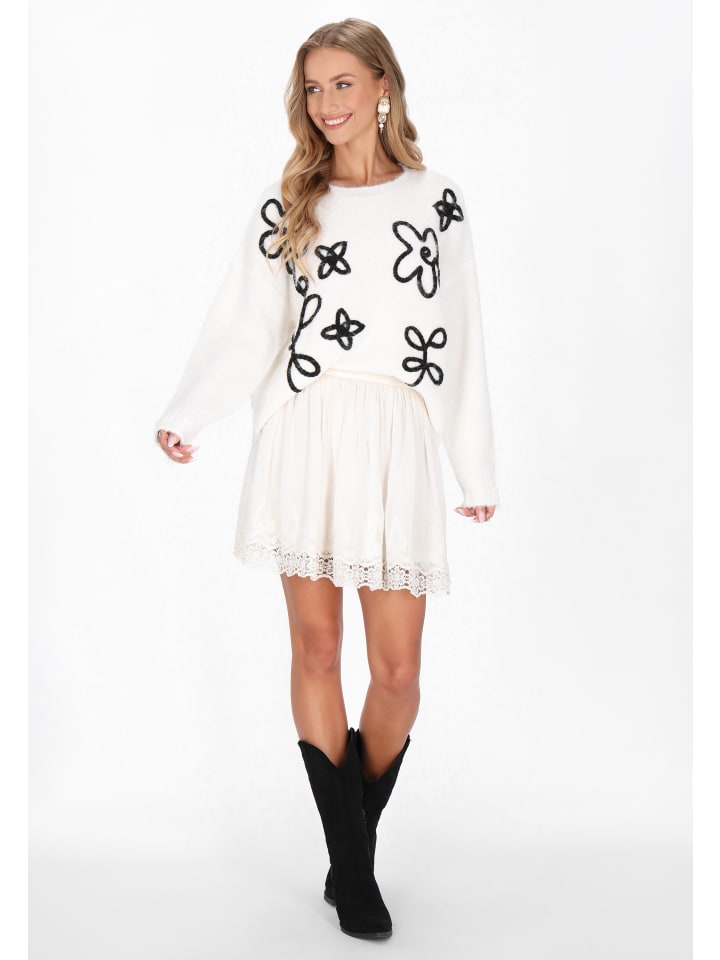 Оставайтесь в комфорте и уюте с этим свободным свитером из коллекции Boho. Круглый вырез горловины и длинные рукава со спущенным плечом обеспечивают непринужденный комфорт и непринужденный силуэт. Этот свитер, связанный с цветочной вышивкой, добавит легкий богемный шарм повседневной одежде. Мягкий, удобный и универсальный, он идеально подходит для создания многослойного образа или самостоятельного ношения, создавая стильный и уютный образ.