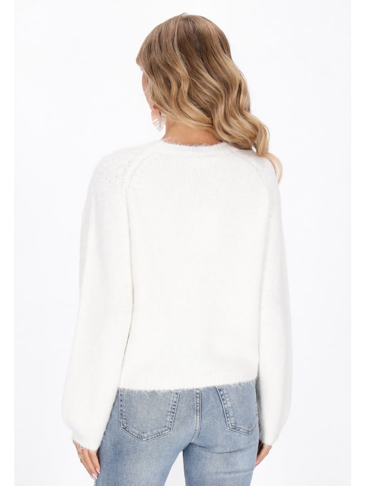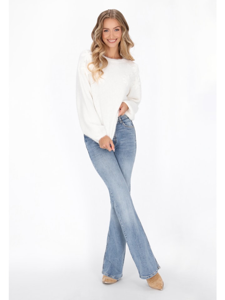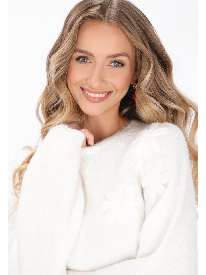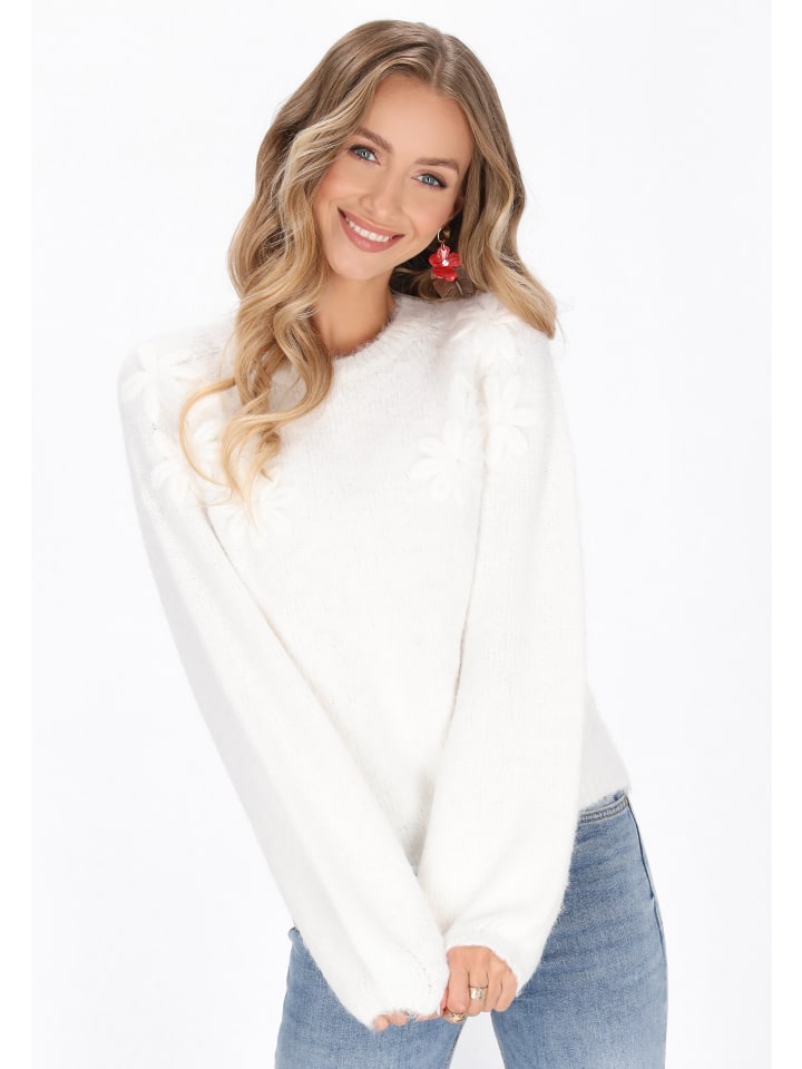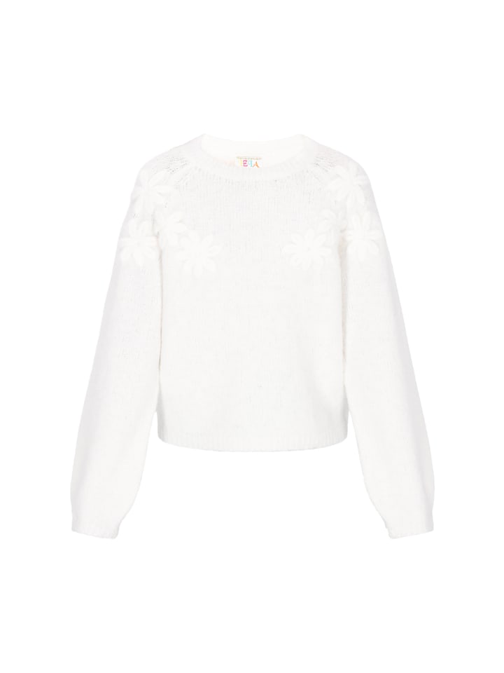 Стильный свободный свитер из мягкой трикотажной ткани. Круглый вырез горловины и длинные рукава-фонарики создают непринужденный образ. Нежные вышитые цветочные узоры добавляют женственности, а мягкая ткань обеспечивает тепло и комфорт. Идеально подходит для повседневной носки, сочетая комфорт и модный вид, что делает его идеальным дополнением к коллекции Fashion Look.