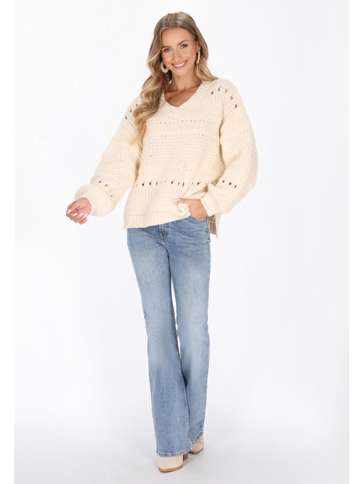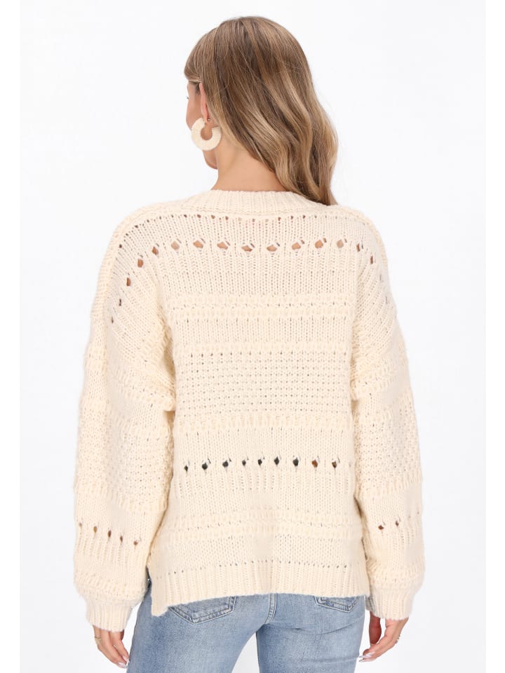 Оставайтесь в комфорте и уюте с этим свободным свитером из коллекции Boho. V-образный вырез, длинные рукава-бишоп и спущенные плечи создают комфортный и непринужденный силуэт. Этот свитер, связанный нежным ажурным узором, добавит изящной текстуры и богемного очарования повседневной одежде. Мягкий, универсальный и уютный, он идеально подходит для создания многослойного образа или сам по себе, создавая непринужденный и стильный образ.
