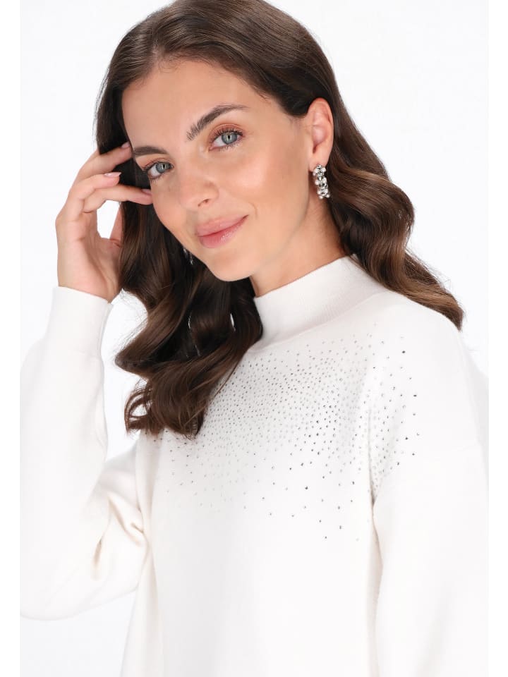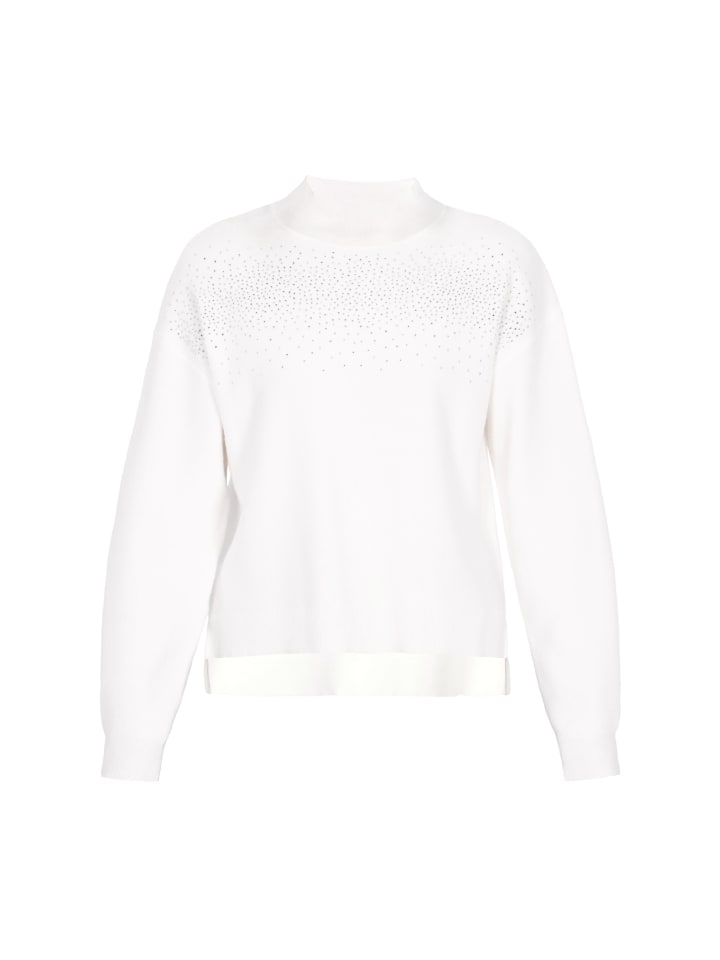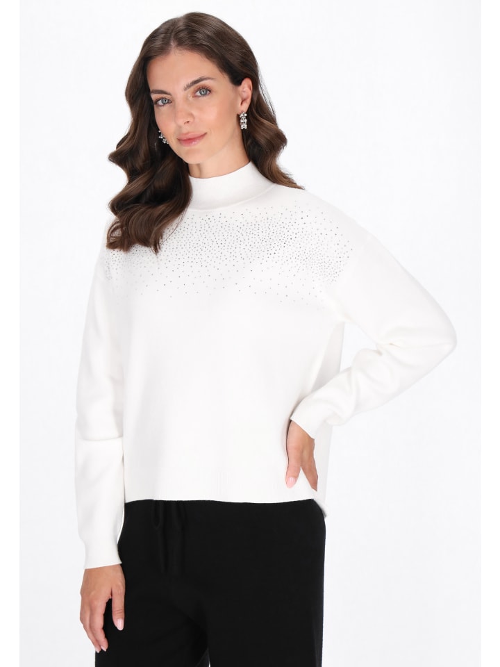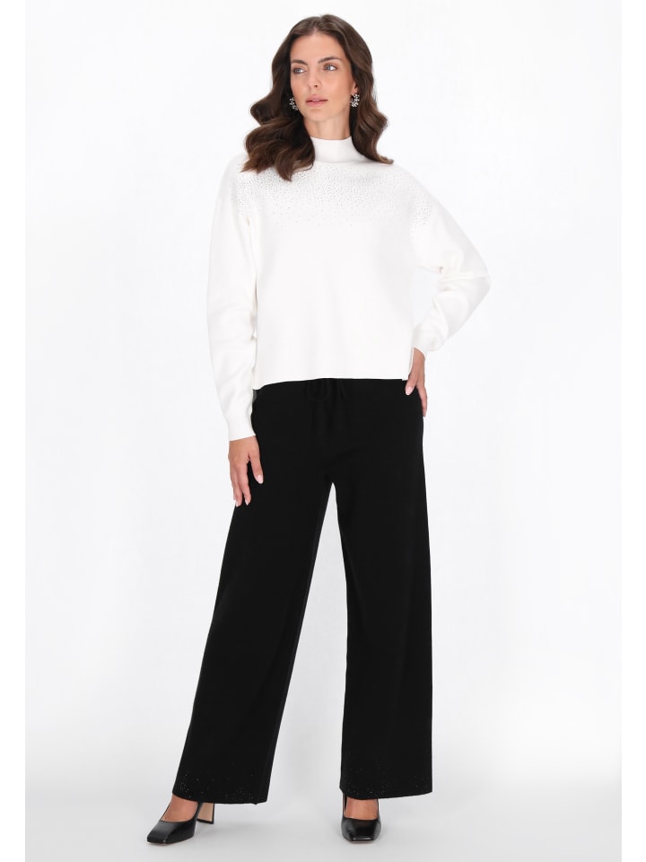 Свитер из коллекции Usha Black Label - элегантный и удобный повседневный вариант. Изготовленный из мягкого, гладкого трикотажа и украшенный изящными стразами, он сочетает в себе непринужденный комфорт и изысканный блеск. Свободный крой со спущенной линией плеч, длинными рукавами и воротником-стойкой обеспечивает комфорт и тепло, а классический минималистичный дизайн делает свитер идеальным для повседневной носки, добавляя нотку элегантности.