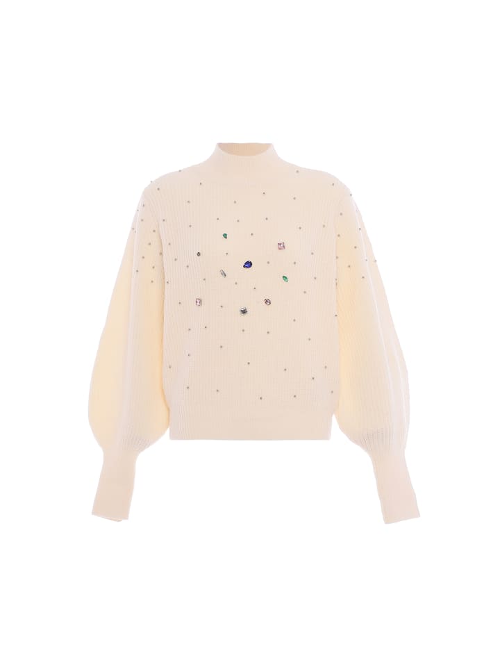 Украсьте свой гардероб этим шикарным свитером, созданным с учетом стиля. Он имеет воротник-стойку и длинные рукава-фонарики, которые обеспечивают плотную посадку и дополнительный комфорт. Этот элегантный свитер, украшенный разноцветными стразами на ребристой вязке, сочетает в себе комфорт и авангардный стиль, от которого невозможно оторваться. Он входит в коллекцию Fashion Look.