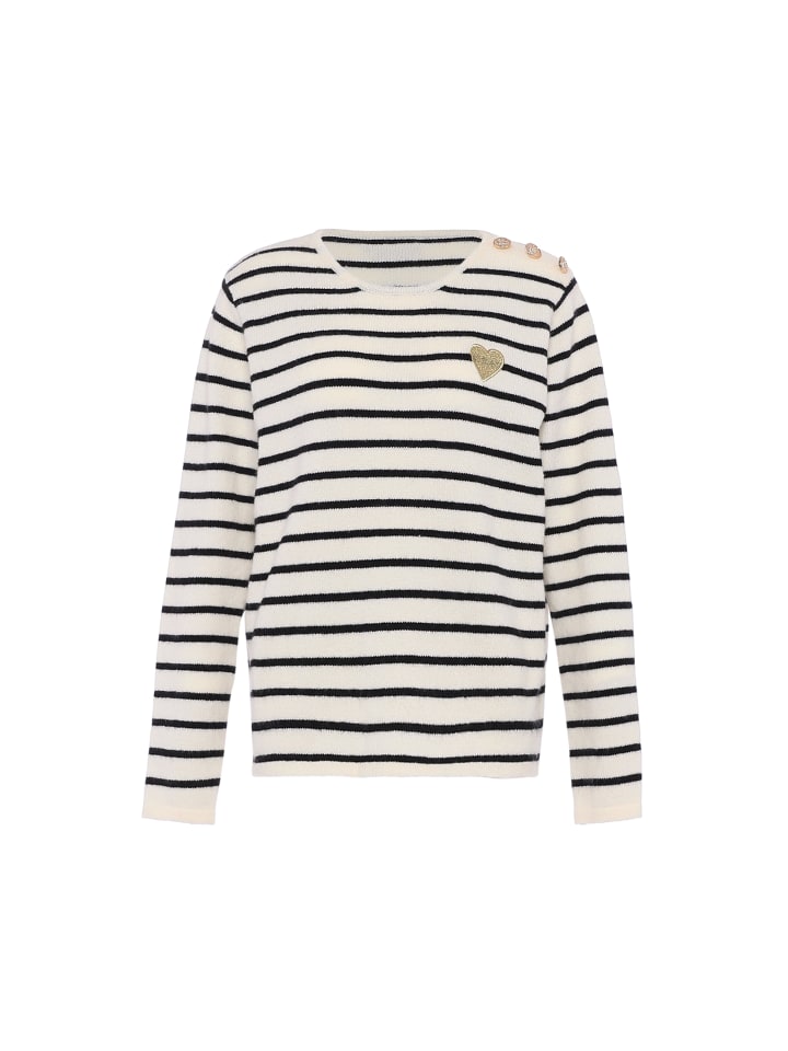 Вот стильный свитер с нестареющим горизонтальным полосатым рисунком. Этот топ с круглым вырезом имеет ребристые края для удобной посадки и очаровательное украшение в виде сердца на груди. Функциональные пуговицы на плечах добавляют изюминки и комфорта этому трикотажному изделию, предлагая тепло и гибкость в классическом дизайне, напоминающем морской или преппи стили. - Представляем стильный свитер с нестареющим горизонтальным полосатым рисунком. - Этот топ с круглым вырезом имеет ребристые манжеты и подол для идеальной посадки и милое украшение в виде сердца на груди. - Функциональные пуговицы на плечах добавляют изысканности и комфорта этому трикотажному изделию. - Предлагает тепло и гибкость в классическом дизайне, напоминающем морской или преппи стили. - Идеально подходит для повседневной носки или особых случаев. - Стильный свитер с нестареющим полосатым рисунком. - Круглый вырез, ребристые манжеты. - Пуговицы на плечах для изысканности и комфорта. - Тепло и гибкость в классическом дизайне. Материал: - 52% другой материал. - 28% полиамид. - 20% полиэстер.