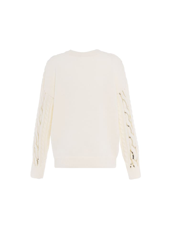 Украсьте свой гардероб этим шикарным свитером с круглым вырезом и длинными рукавами. Классический крой обеспечивает комфорт, а узор «косы» добавляет элегантности. Благодаря отделке пайетками и вязаному крою этот свитер излучает шик и модное очарование. Идеально подходит для придания уникальности вашему образу. Входит в коллекцию Fashion Look.