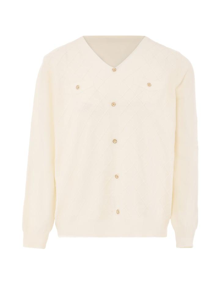 Этот кардиган с длинными рукавами имеет структурированный стеганый узор, V-образный вырез и планку с пуговицами спереди. Вертикальные пуговицы по центру добавляют элегантности, а ребристые манжеты и подол - изящную деталь. Небольшой нагрудный карман добавляет функциональности этой универсальной модели, гармонично сочетая повседневный и деловой стиль для любого случая. Разработанная совместно с ALARY, эта модель сочетает в себе классический стиль и современный дизайн.