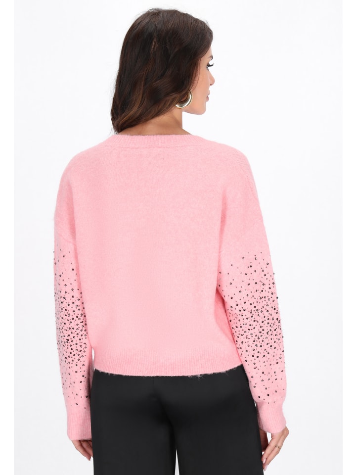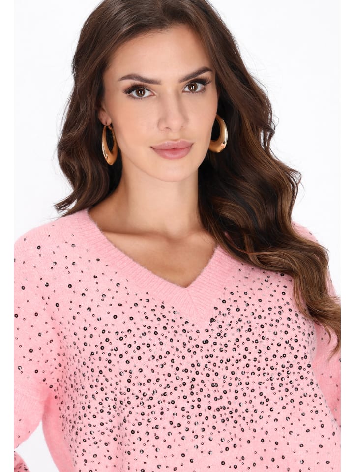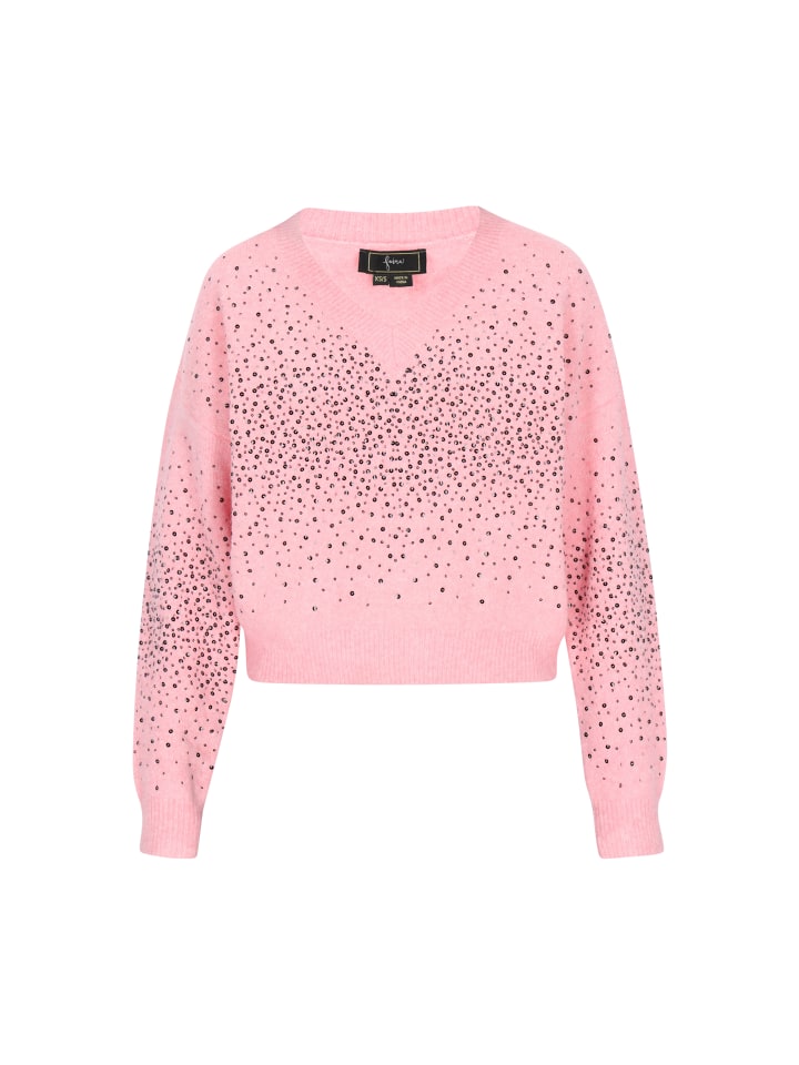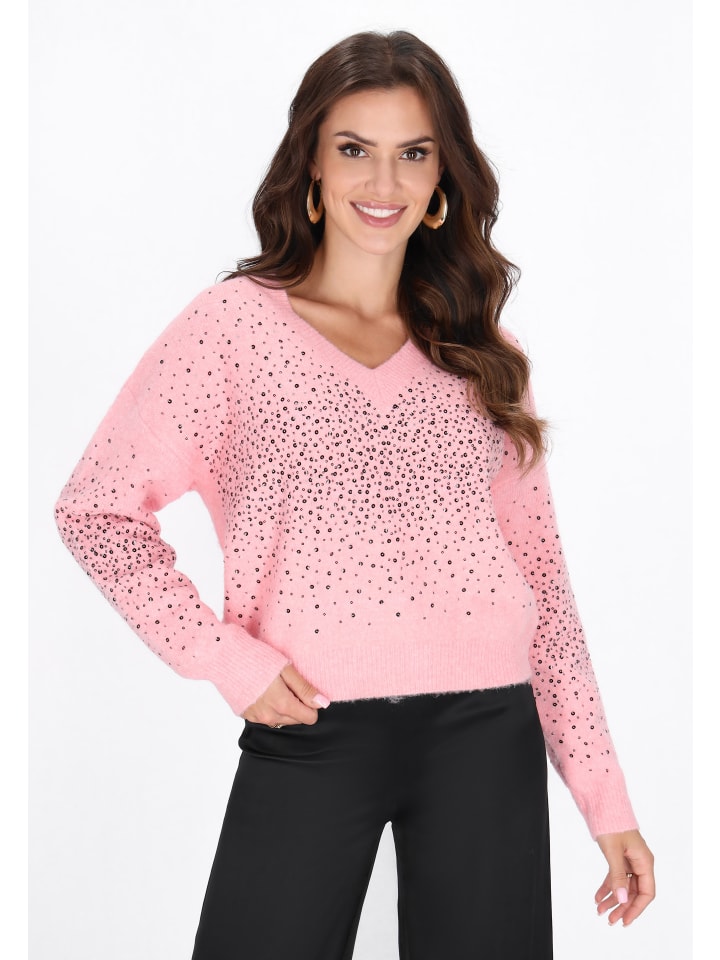 Этот свитер из коллекции Fashion Look - идеальное сочетание повседневного стиля и утонченного гламура. Свободный крой и спущенная линия плеча обеспечивают комфорт и слегка свободный вид, который идеально соответствует современным тенденциям. Классический V-образный вырез красиво подчеркивает шею, а длинные рукава согревают в холодные дни. Изделие выполнено из мягкого трикотажа с гладким переплетением, украшенного блестящими пайетками, которые придают стилю шикарный и неповторимый характер. Прекрасный выбор для повседневных и вечерних выходов.