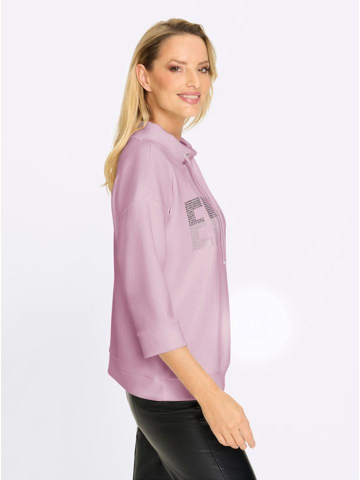 Свитшот: невероятно удобный и стильный! С надписью ENJOY и стразами. Воротник-стойка с кулиской и завязкой. Спущенное плечо и манжеты на рукавах 3/4 и по низу.