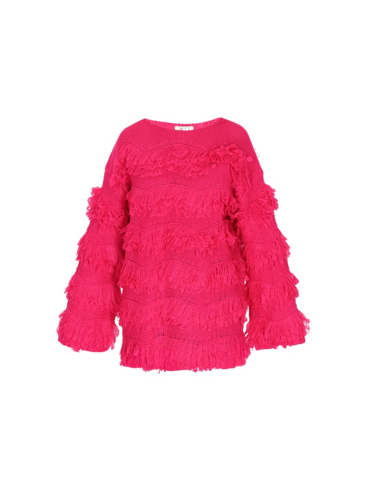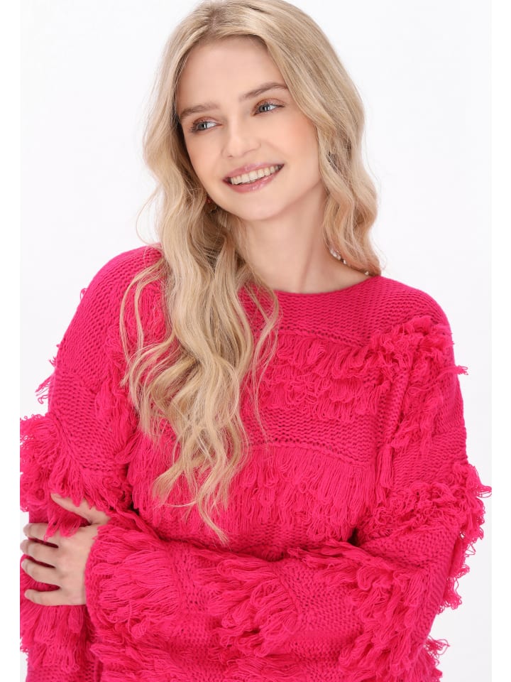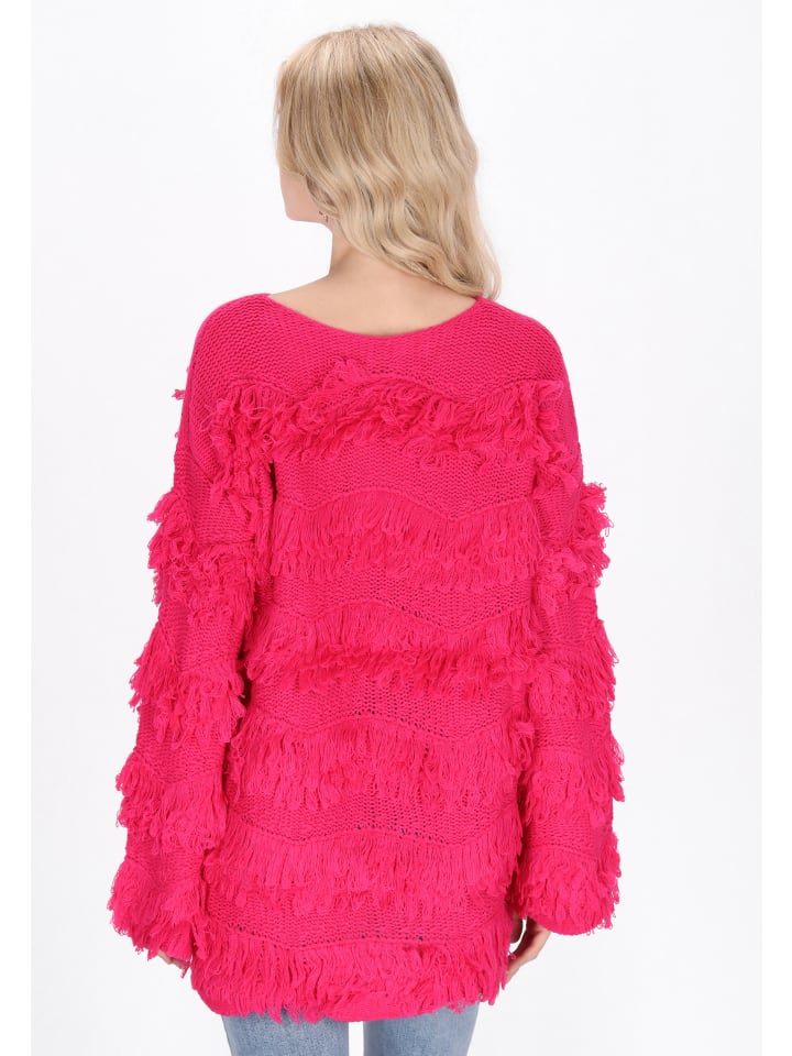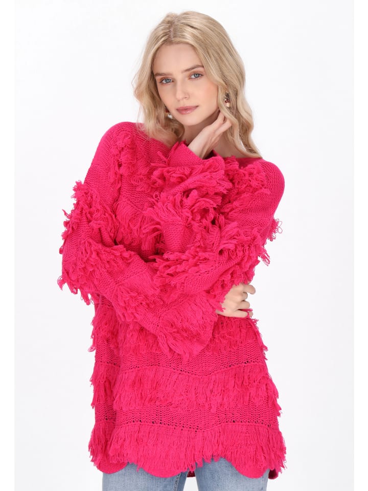 Этот свитер из коллекции Boho - воплощение комфортного стиля с характером. Свободный крой с широкими рукавами и спущенной линией плеч обеспечивает свободу движений и исключительный комфорт. Вырез «лодочка» деликатно обнажает плечи, а трикотажная структура с бахромой и фактурным узором привлекает внимание и добавляет образу нотку этнического колорита. Идеально подходит для любителей этнического стиля, ценящих нестандартные формы и повседневный комфорт.