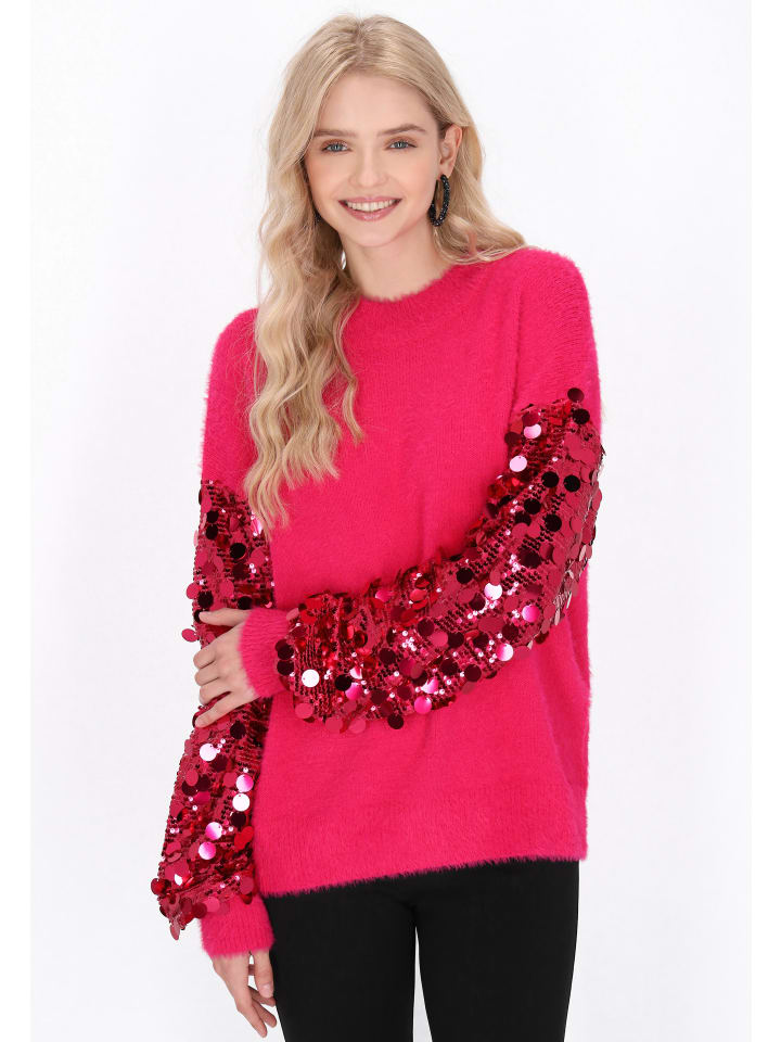 Необычный свитер из коллекции Boho, созданный с учетом комфорта и стиля. Свободный крой со спущенной линией плеча и эффектными рукавами-фонариками придает изделию легкость и модный вид. Круглый вырез горловины и трикотажная структура обеспечивают комфорт, а мерцающий узор с пайетками придает легкий этнический блеск. Идеальное предложение для поклонников стиля бохо, которые любят сочетать комфорт с оригинальным образом.