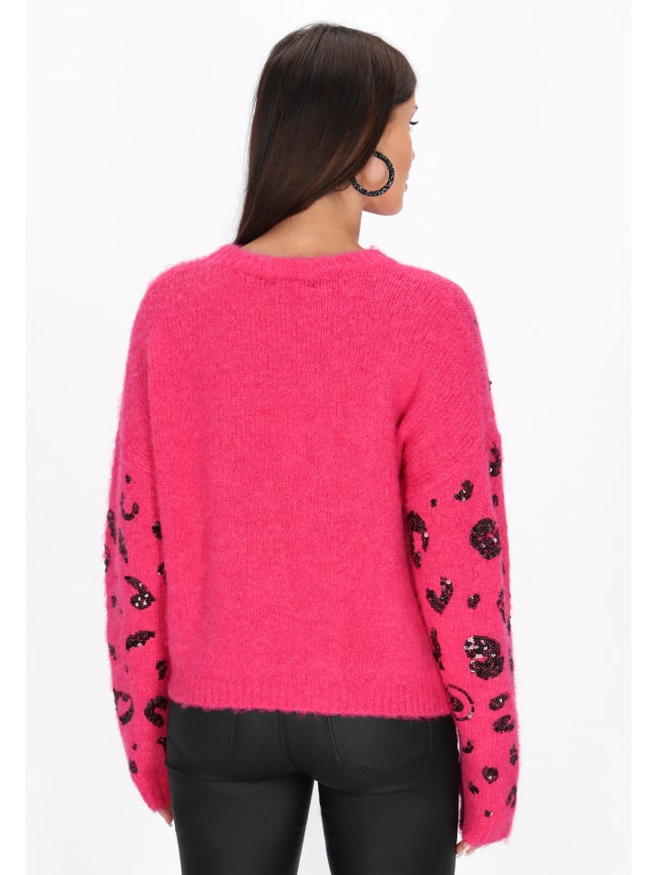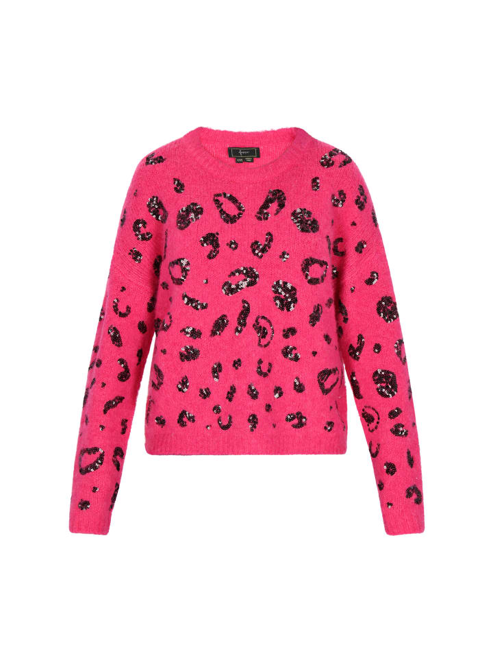 Модный свитер свободного кроя, обеспечивающий комфорт и свободу движений. Длинные рукава и классический круглый вырез горловины. Характерные спущенные плечи подчеркивают непринужденный стиль. Изготовлен из мягкого трикотажа и украшен мерцающими пайетками для создания неповторимого образа. Леопардовый принт добавляет индивидуальности и модного штриха. Идеально подходит для повседневной носки, где комфорт и стиль играют ключевую роль. Входит в коллекцию Fashion Look.