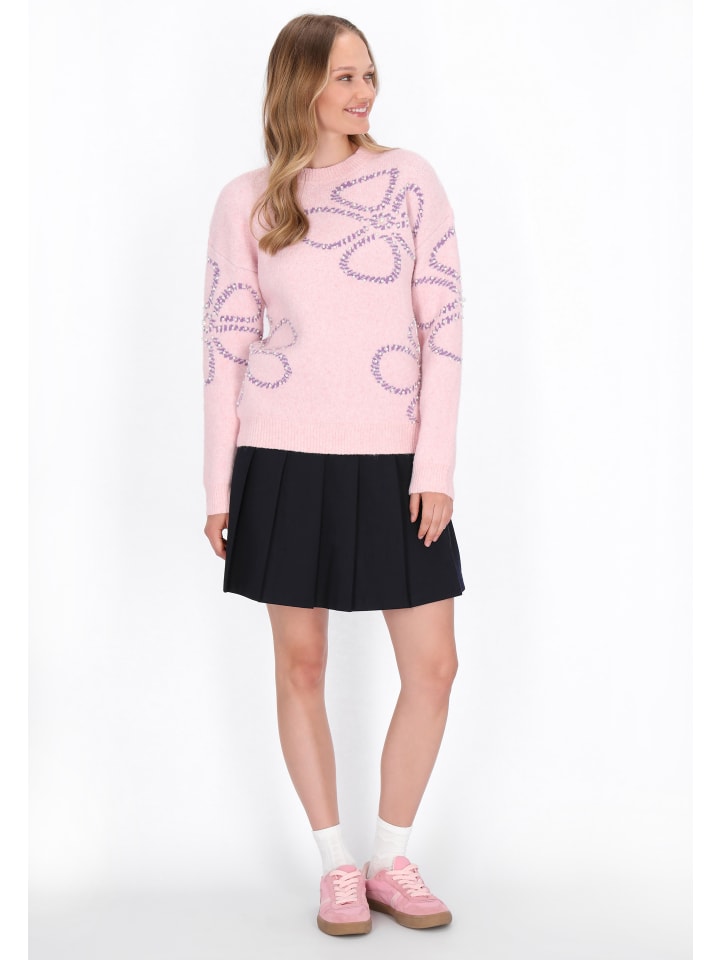 Свободный свитер, сочетающий комфорт с романтическим, молодежным стилем. Изготовленный из мягкой трикотажной ткани и украшенный цветочным узором и нежным жемчугом, он придает образу нежное очарование. Круглый вырез горловины, длинные рукава и спущенная линия плеча обеспечивают свободу движений и непринужденный вид. Теплый, уютный и исключительно комфортный - идеальный повседневный выбор для создания милого и уютного образа. Этот свитер входит в коллекцию Young Fashion.